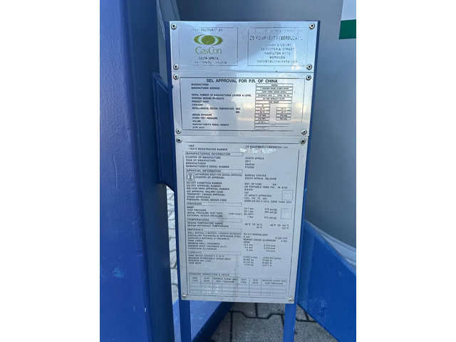 20FT ISO T50 Gastank / T50 / 25.000L / MAWP: 15,1 bar / 5Y- + CSC-inspection valid till 04-2028