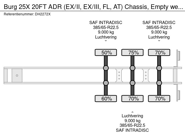 Burg 25X 20FT ADR (EX/II, EX/III, FL, AT) Chassis, Empty weight : 3.690kg, SAF INTRADISC, 2x Liftaxle, NL-chassis