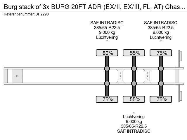 Burg stack of 3x BURG 20FT ADR (EX/II, EX/III, FL, AT) Chassis, Empty weight : 3.690kg, SAF INTRADISC, 2x Liftaxle, NL-chassis