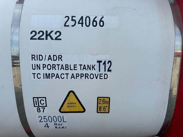 CIMC 20FT ISO, 25.060L / 1-COMP / 3 BAFFELS / T12 / 22K2 / 4 manholes / ADR valid until 12/2026