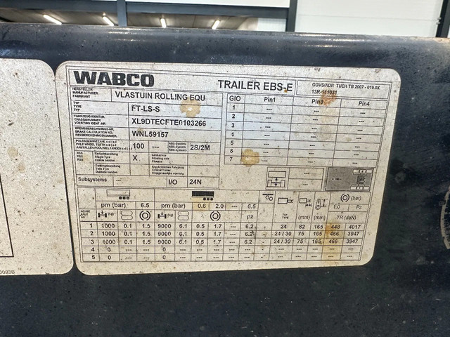 Achteras 3: Max. aslast: 9000 kg; Bandenprofiel links: 50%; Bandenprofiel rechts: 40%
