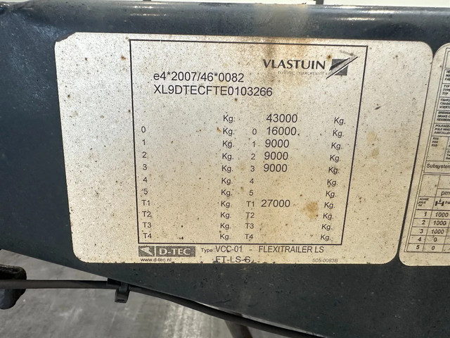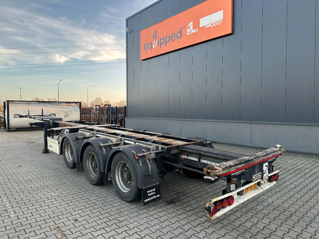 mooi 2014 D-TEC FLEXITRAILER 45FT HC-chassis , BPW-assen met trommelremmen, ABS/EBS, 1e as = liftas, 3x uitschuifbaar (voor, midden en achter), 1x20FT, 2x20FT, 1x20FT centraal, 1x30FT, 1x40FT, 1x40FT HC, 1x45FT HC, leeggewicht: 4.962kg, GVW: 43.000kg, 385/55-R22.5 banden (R: 7/7/8mm; L: 6/9/6mm), Nederlandse registratie met geldige technische keuring (APK) t/m 18-11-2026