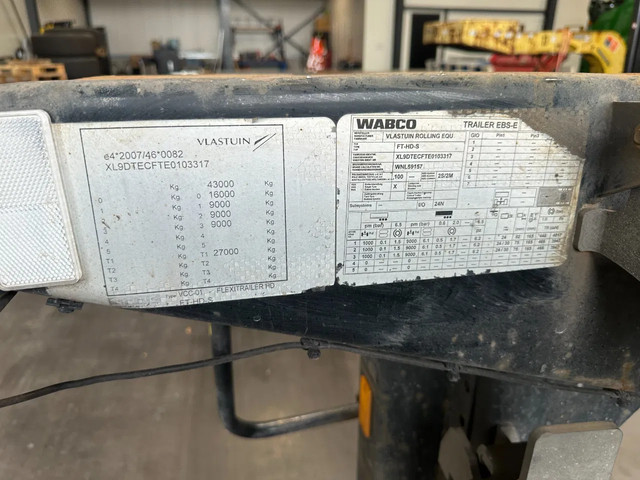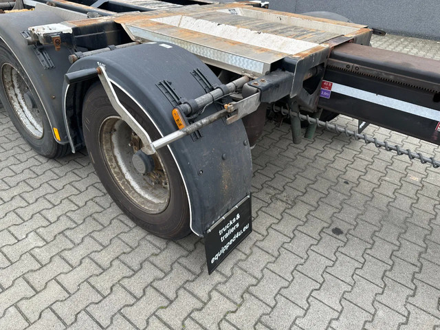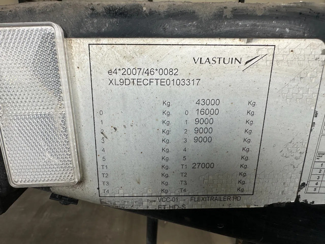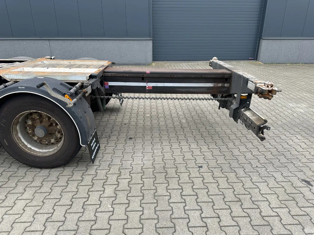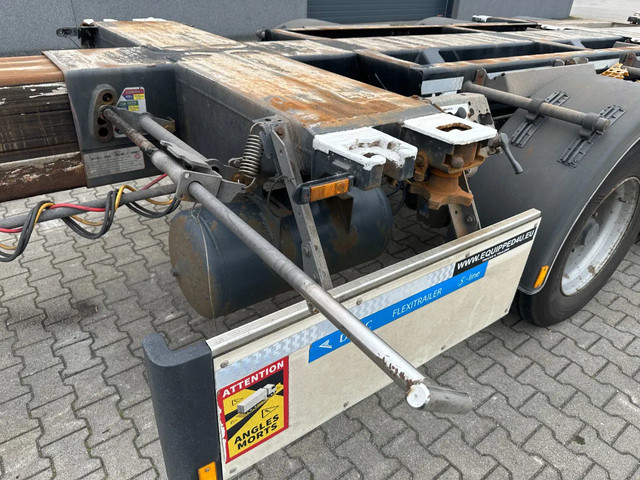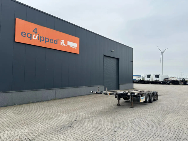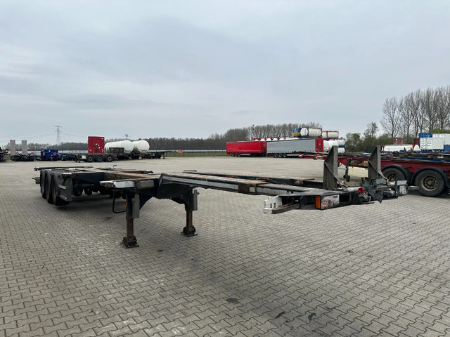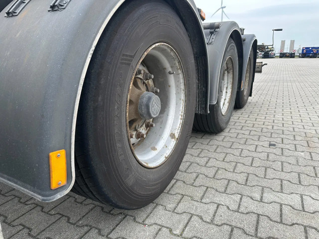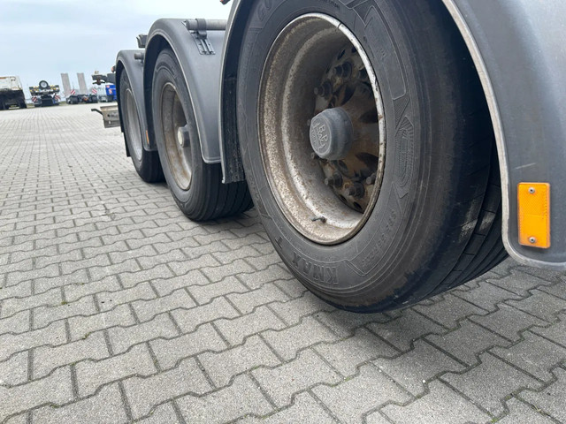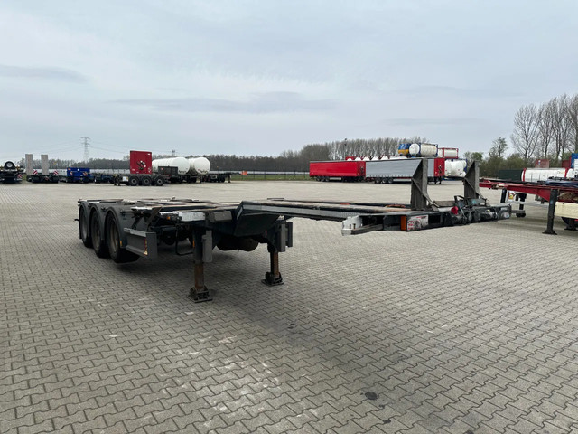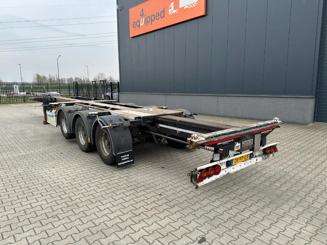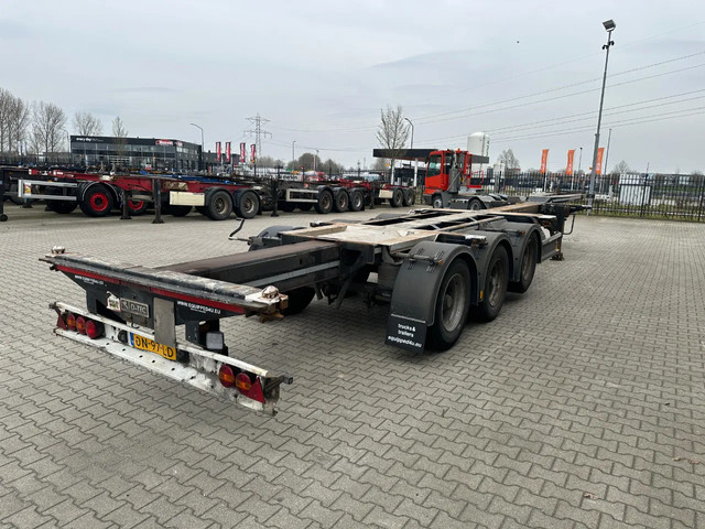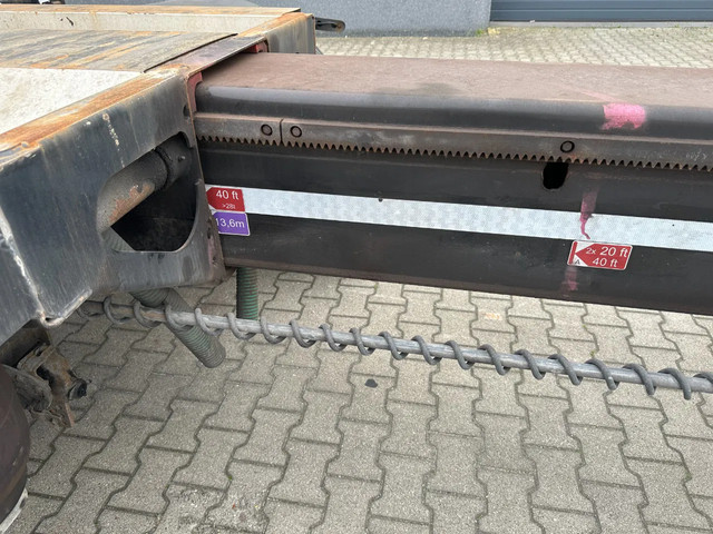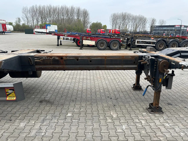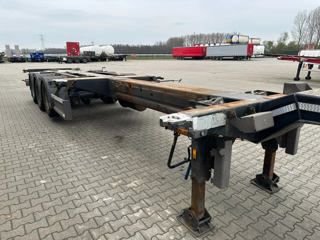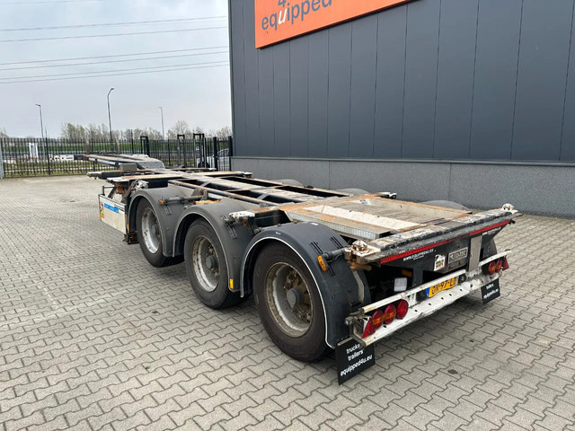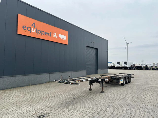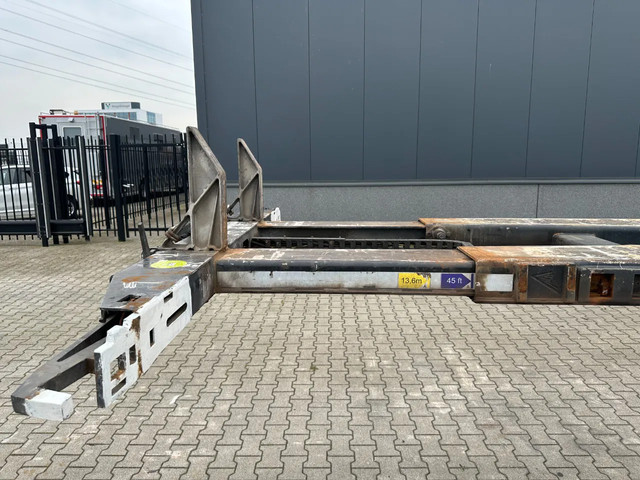 zeer mooie 09/2014 D-TEC FLEXITRAILER 45FT HC-chassis met ABS/EBS, BPW-assen met trommelremmen, ADR (EX/II, EX/III, FL, OX, AT), 1e as = liftas, 3x uitschuifbaar (voor, midden en achter), 1x20FT, 2x20FT, 1x20FT centraal, 1x30FT, 1x40FT, 1x40FT HC, 1x45FT HC, leeggewicht: 5.134kg, GVW: 43.000kg, 385/55-R22.5 banden (R:11/6/11mm; L: 11/6/5mm), Nederlandse registratie met geldige technische keuring (APK) t/m 27-11-2026