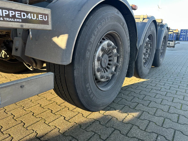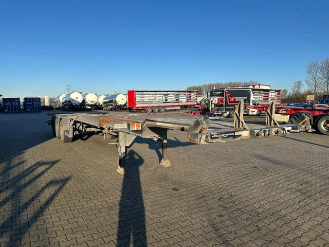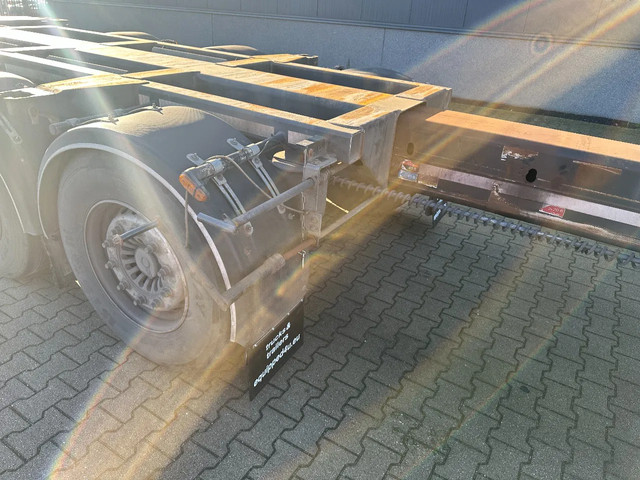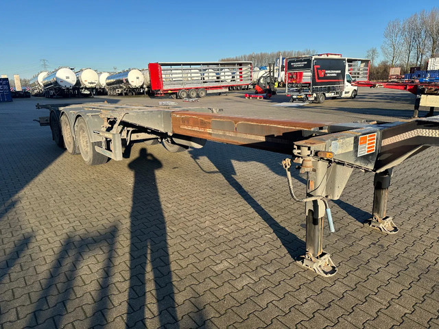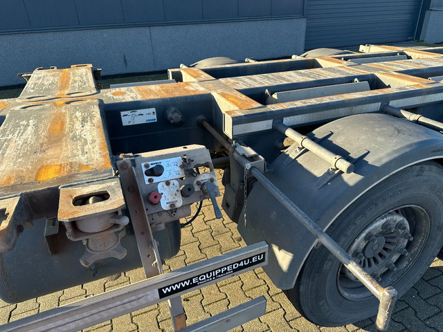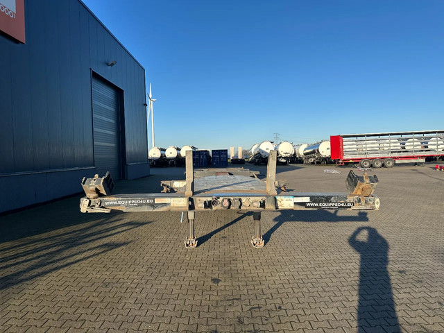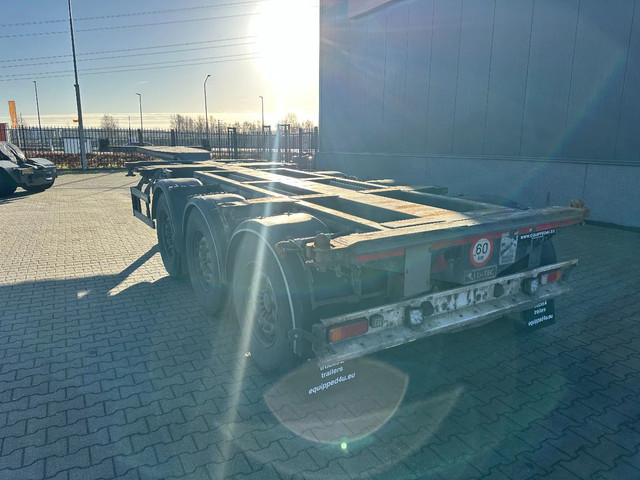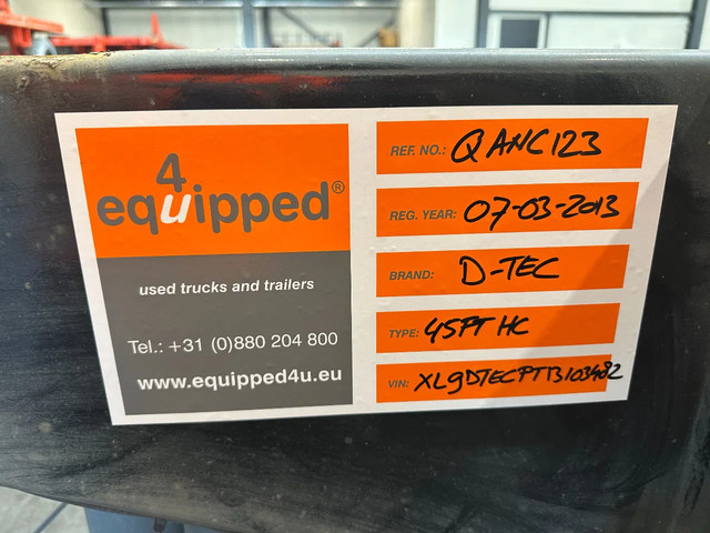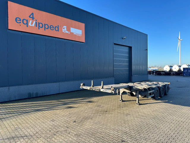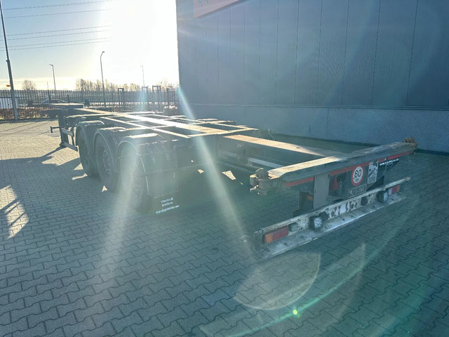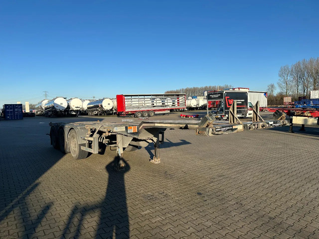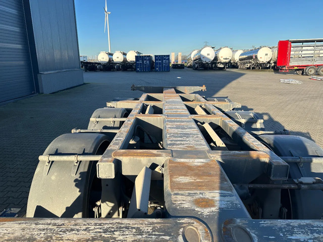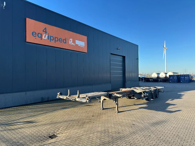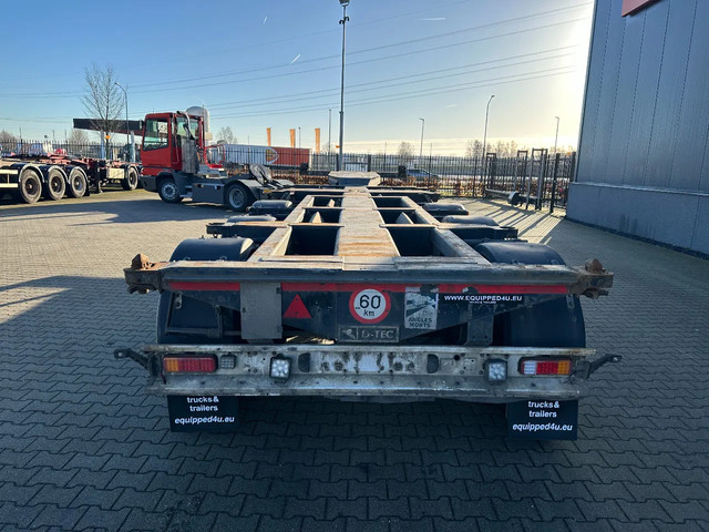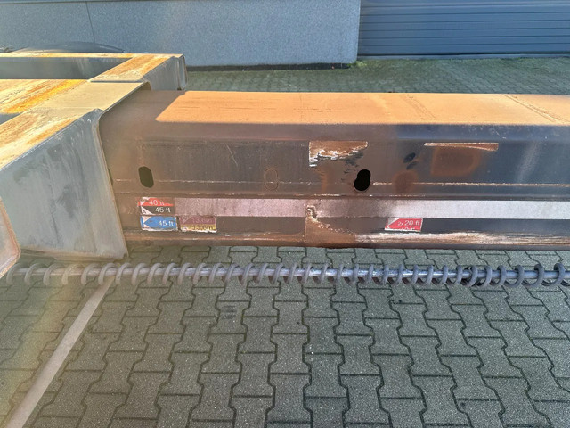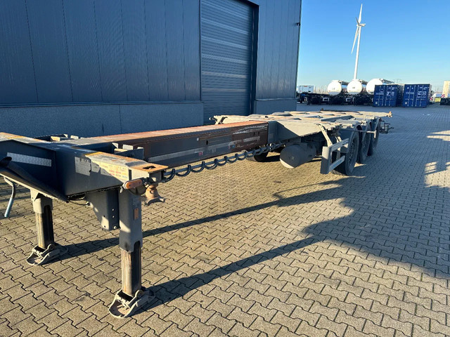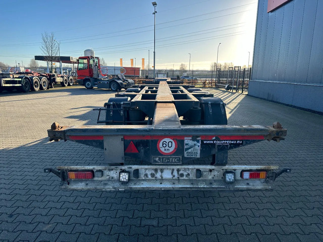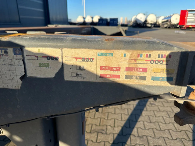 nette 2013 D-TEC FLEXITRAILER 45FT High Cube chassis met SAF-assen met schijfremmen, ABS/EBS, 1e as = liftas, 2x uitschuifbaar (midden en achter) + vaste kop, 1x20FT, 2x20FT, 1x20FT centraal, 1x30FT, 1x40FT, 1x40FT HC, 1x45FT HC, leeggewicht: 5.140kg, GVW: 43.000kg, 385/65-R22.5 banden (R: 6/4/4mm; L: 6/6/5mm), Belgische registratie met geldige technische keuring t/m 26-10-2026, 2x beschikbaar