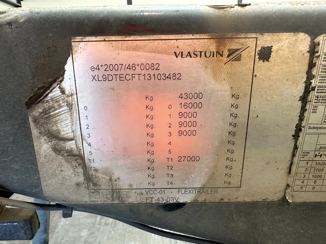 Achteras 1: Max. aslast: 9000 kg; Bandenprofiel links: 40%; Bandenprofiel rechts: 40%
