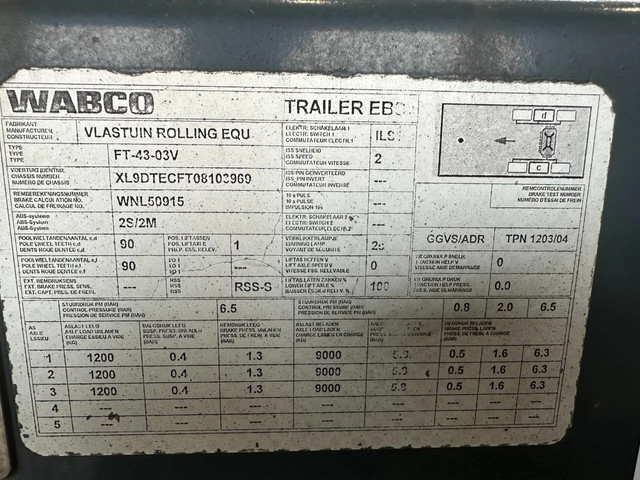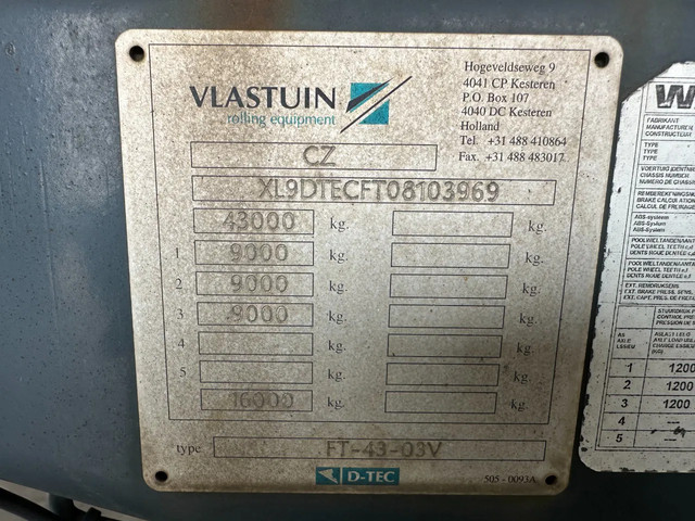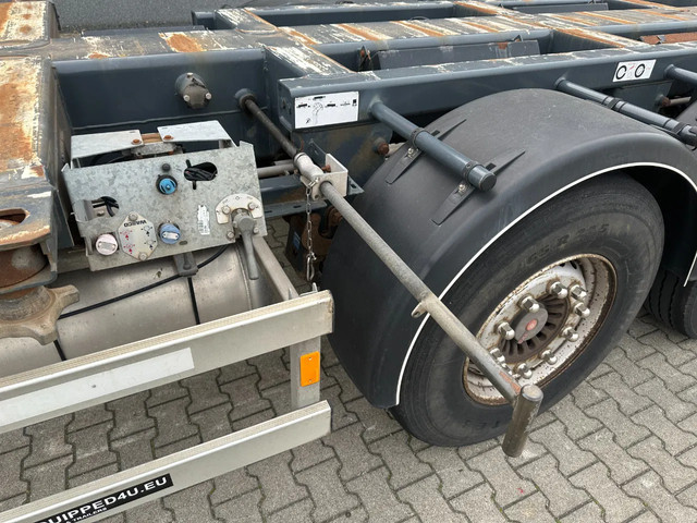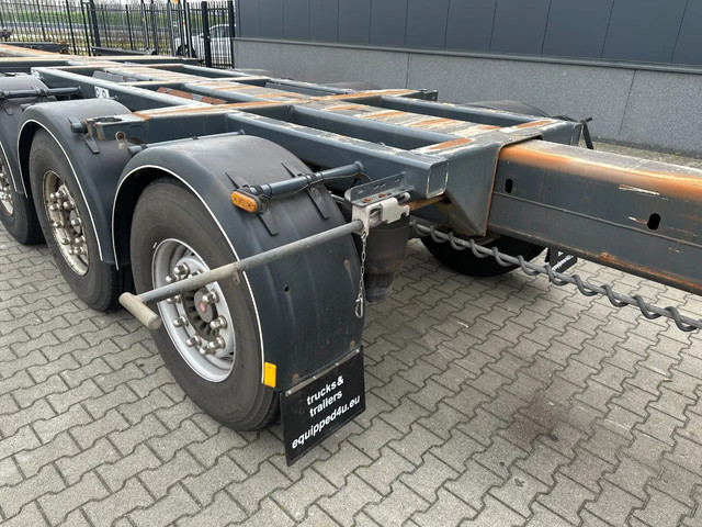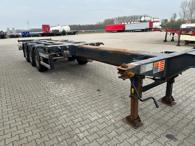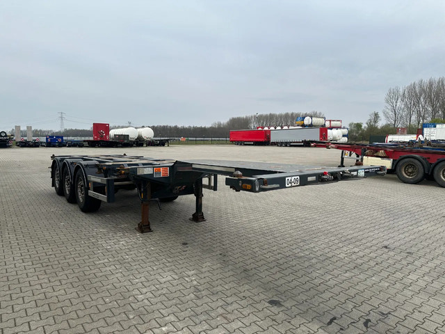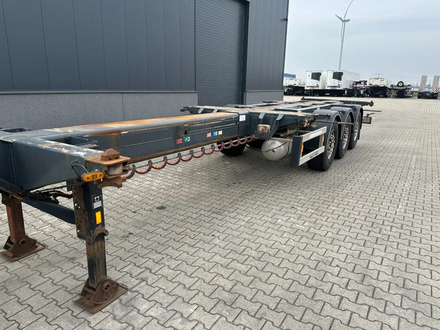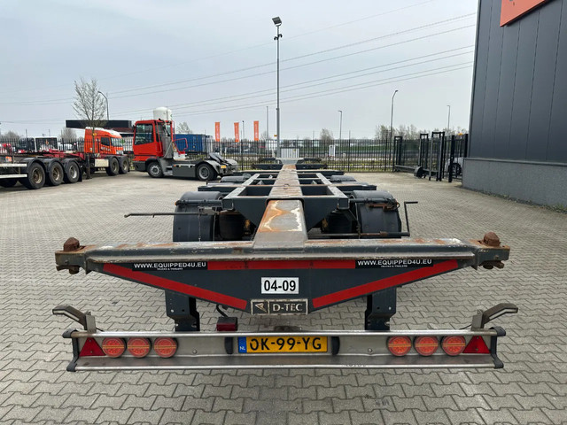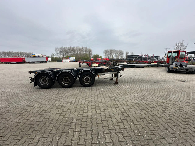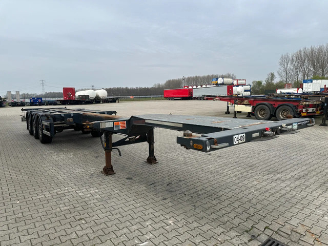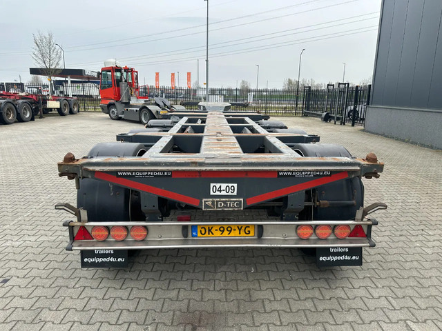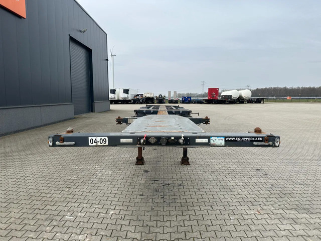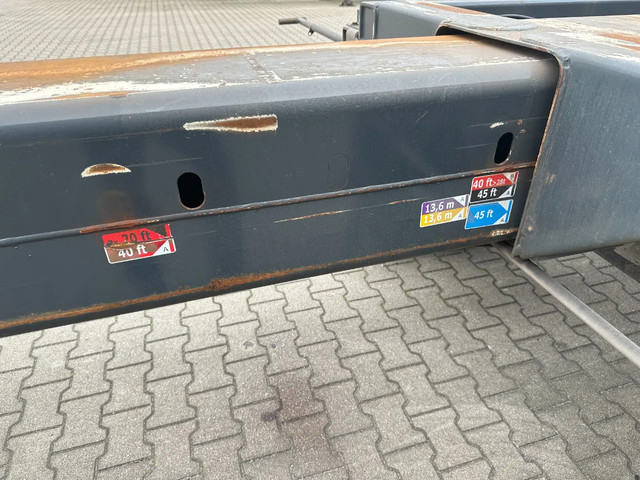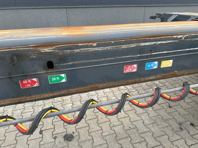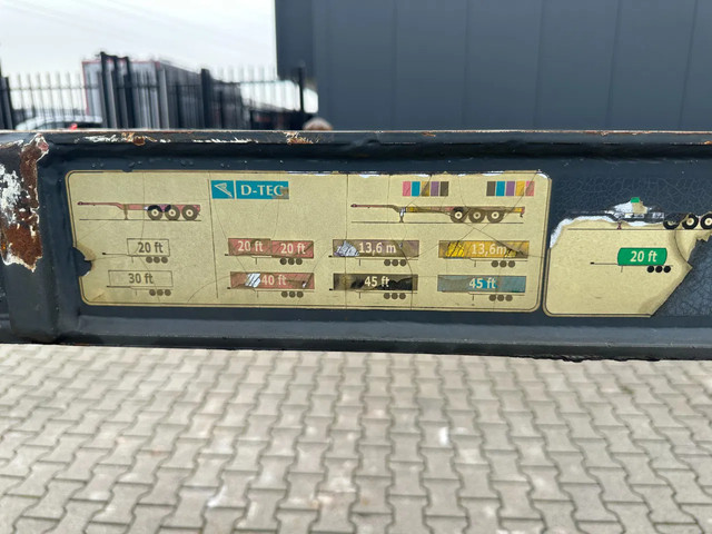 zeer mooi 12/2009 geschoopeerd D-TEC FLEXITRAILER FT43-03V 45FT HC-chassis , SAF-assen met schijfremmen, ABS/EBS, 1e as = liftas, 2x uitschuifbaar (midden en achter), 1x20FT, 2x20FT, 1x20FT centraal, 1x30FT, 1x40FT, 1x40FT HC, 1x45FT HC, leeggewicht: 5.200kg, GVW: 43.000kg, 385/65-R22.5 banden (profiel rechts: 7/9/10mm; profiel links: 8/8/9mm), Nederlandse registratie met geldige technische keuring (APK) t/m 15-12-2026