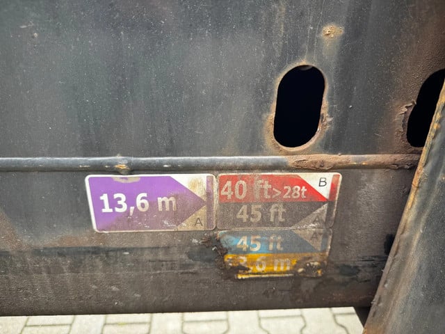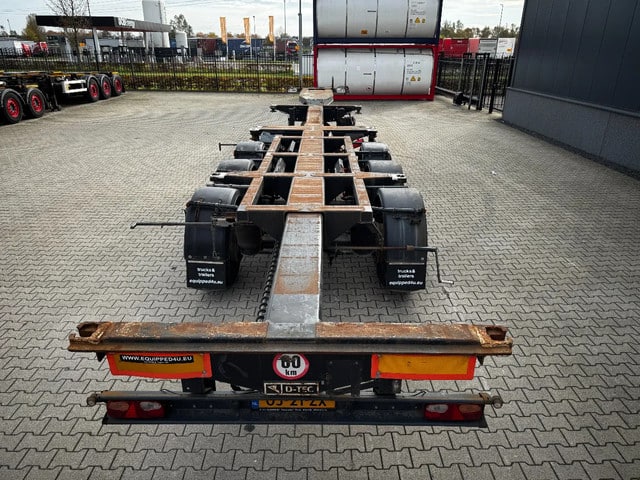 09/2007 D-TEC FT-43-03V 45FT HC multi chassis met ABS/EBS, BPW Eco-Plus assen met trommelremmen, voor, midden en achter uitschuifbaar, 1e as = liftas, leeggewicht: 5.300kg, max. massa: 43.000kg, 385/65-R22.5 banden (L: 9/10/12mm; R: 5/13/12mm), Nederlandse registratie. Let op: achterste deel schuift niet uit!!!