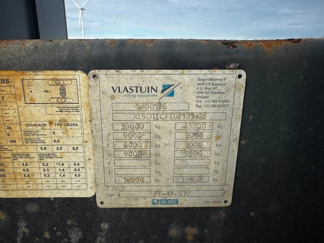 Achteras 1: Max. aslast: 9000 kg; Bandenprofiel links: 55%; Bandenprofiel rechts: 30%