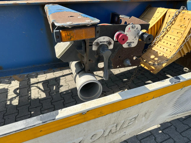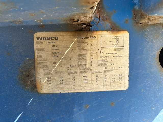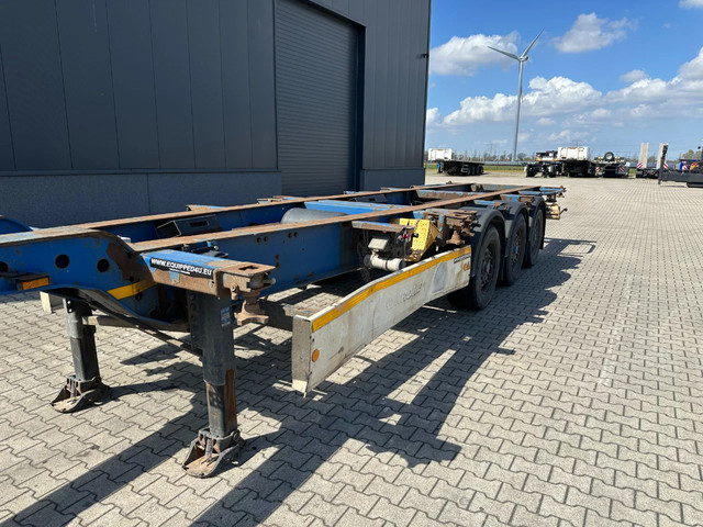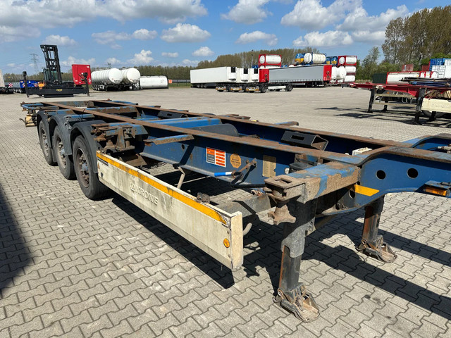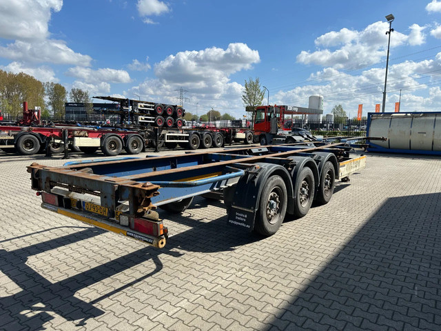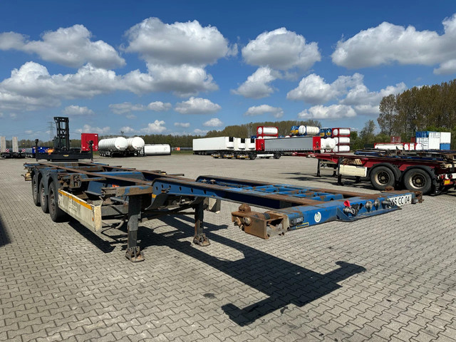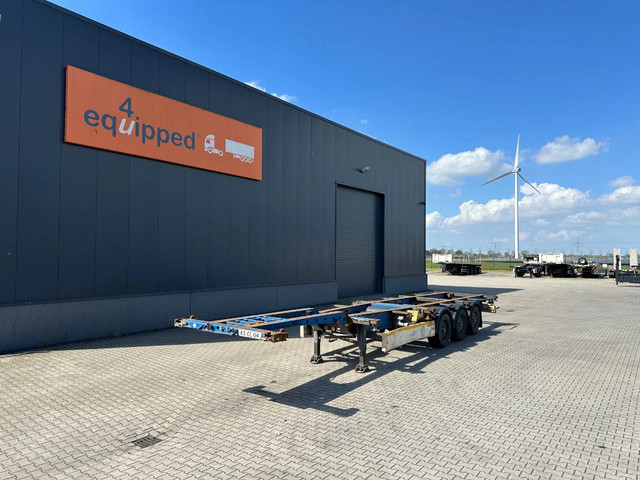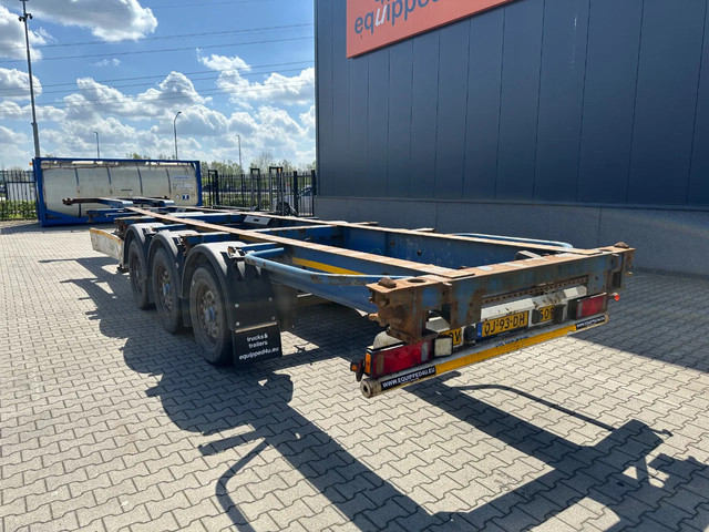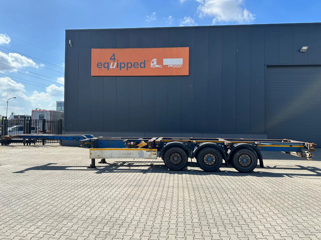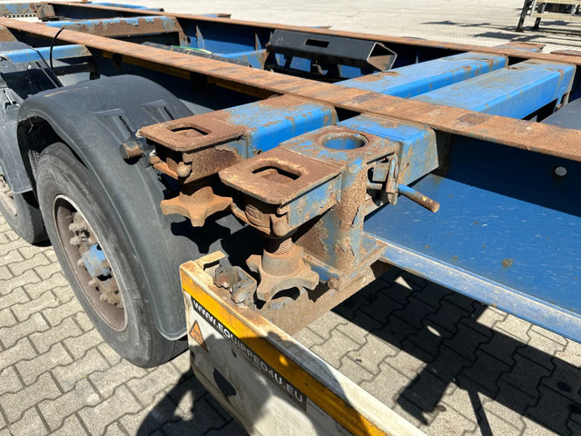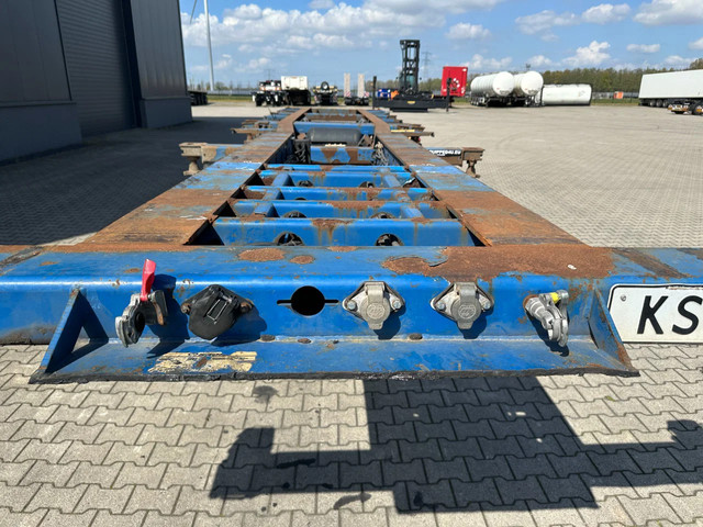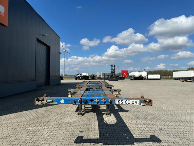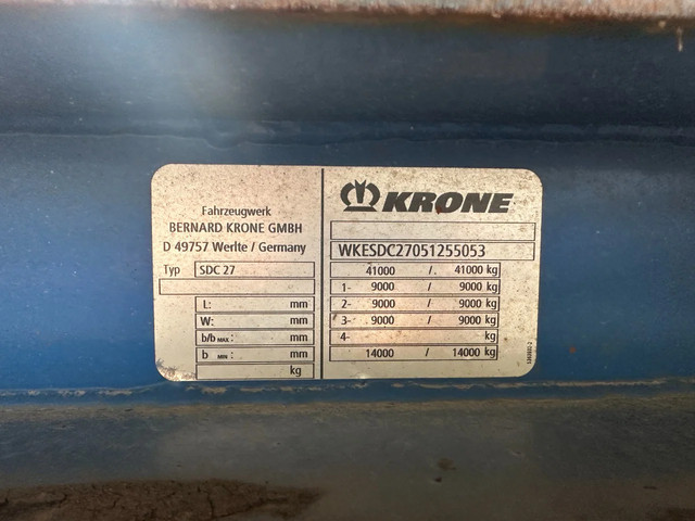 2005 KRONE SDC27 40FT High Cube chassis with ABS/EBS, BPW Eco-Plus axles with disc brakes, non-extendable, for 1x 40FT / 40FT HC / 2x 20FT / 1x 20FT center / 1x 30FT, 1st axle is a lift axle, curb weight: 4,840 kg, GVW: 41,000 kg, 385/55-R22.5 tires (tread depth left: 7/12/0 mm; tread depth right: 7/13/8 mm), Dutch registration