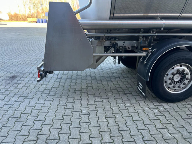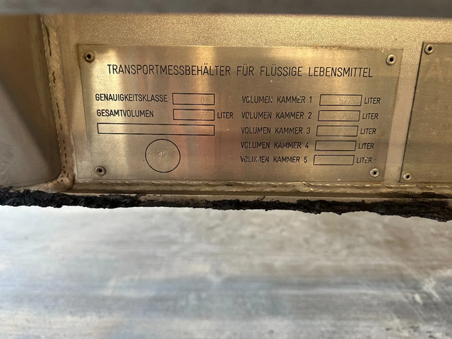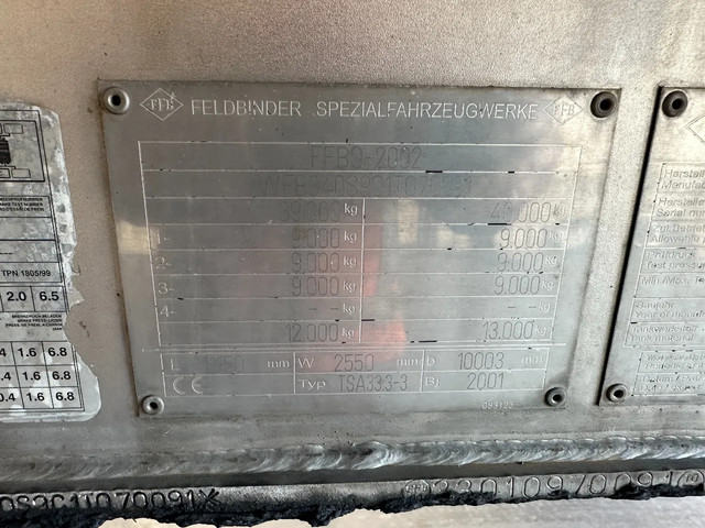 mooie 06/2001 FELDBINDER levensmiddelen tankoplegger met een inhoud van 33.500L, 3 compartiment (comp. 1: 5.000L / comp. 2: 25.000L + 1x slingerschot / comp. 3: 3.500L), incl pomp (merk: UNIBLOC), 3x SAF assen met schijfremmen (INTRADISC), leeggewicht: 7.800kg, max. massa: 39.000kg, 385/65-R22.5 banden (L: 10/6/8mm; R: 16/16/7mm), ALCOA-velgen, Nederlandse registratie met geldige technische keuring (APK) t/m: 15/05/2026
