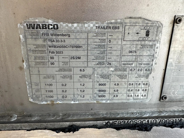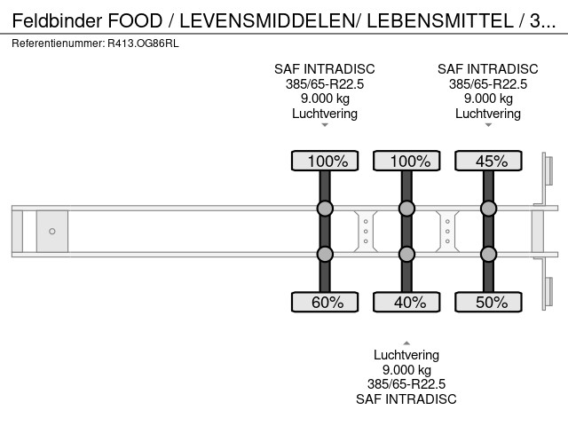 Achteras 3: Max. aslast: 9000 kg; Bandenprofiel links: 50%; Bandenprofiel rechts: 45%