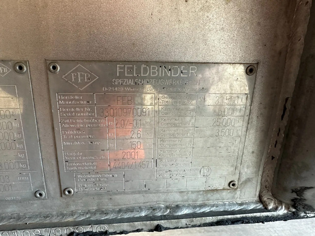 Feldbinder FOOD / LEVENSMIDDELEN/ LEBENSMITTEL / 33.500L / 3-COMP / PUMP / NL-trailer / APK: 05-2026