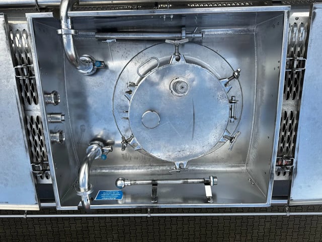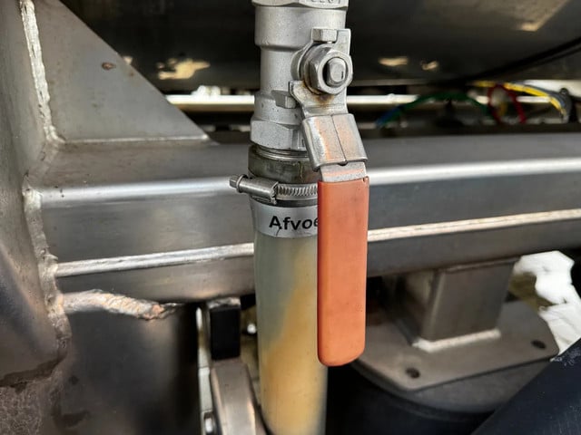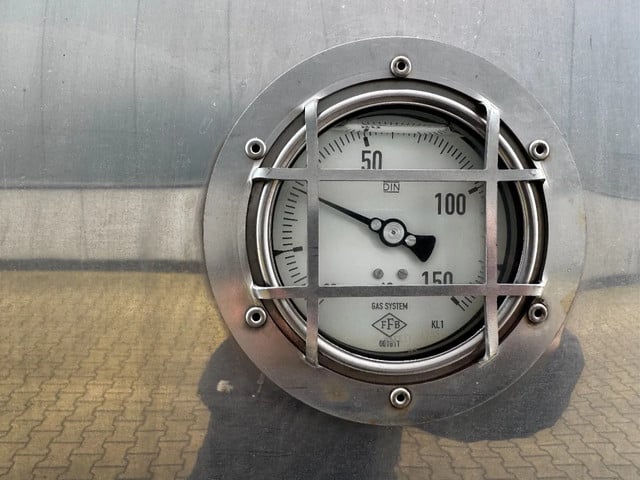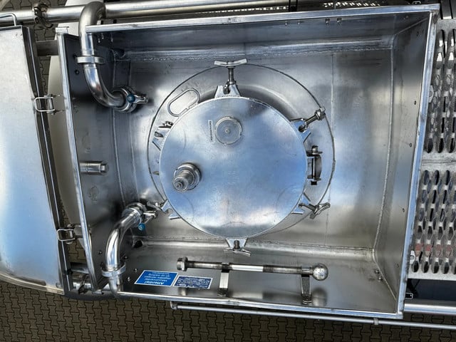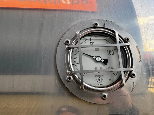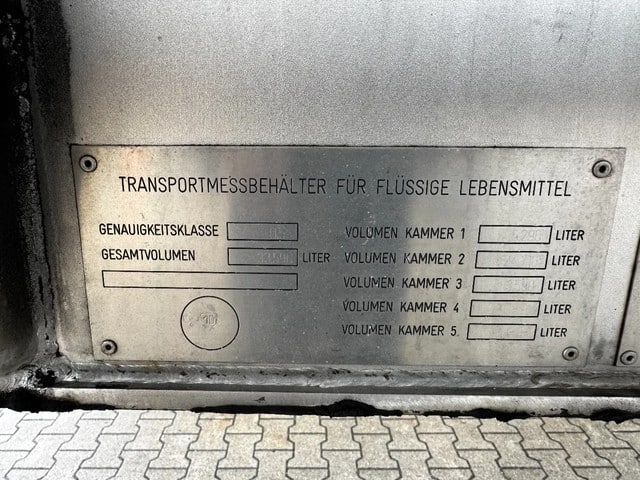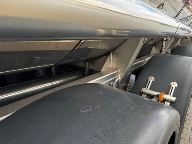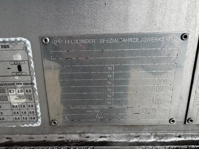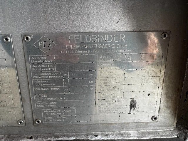 mooie 06/2001 FELDBINDER levensmiddelen tankoplegger met een inhoud van 33.500L, 3 compartiment (comp. 1: 5.000L / comp. 2: 25.000L + 1x slingerschot / comp. 3: 3.500L), incl pomp (merk: UNIBLOC), 3x SAF assen met schijfremmen (INTRADISC), leeggewicht: 7.800kg, max. massa: 39.000kg, 385/65-R22.5 banden (L: 10/10/11mm; R: 3/7/9mm), ALCOA-velgen, Nederlandse registratie met geldige technische keuring (APK) t/m: 02/05/2026