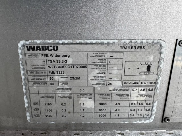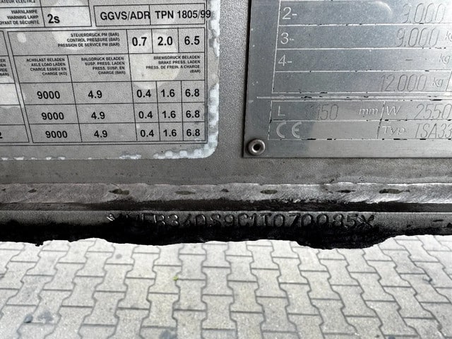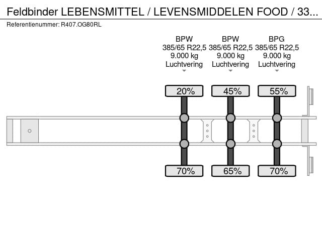 Achteras 3: Max. aslast: 9000 kg; Merk assen: BPG; Bandenprofiel links: 70%; Bandenprofiel rechts: 55%