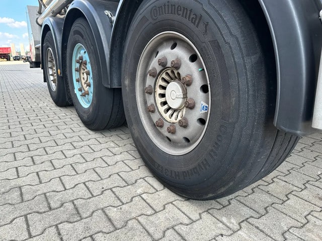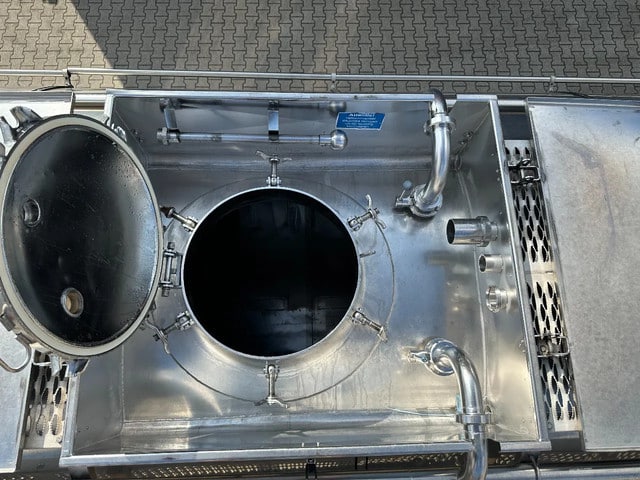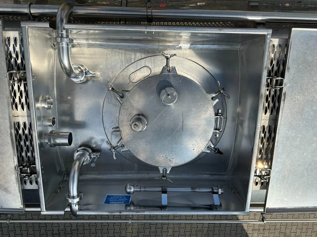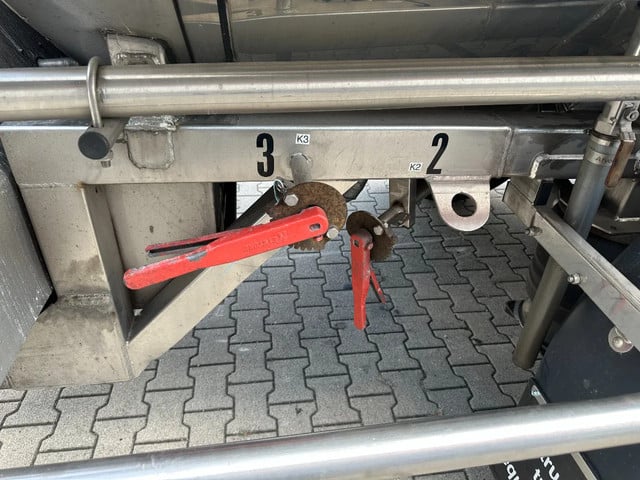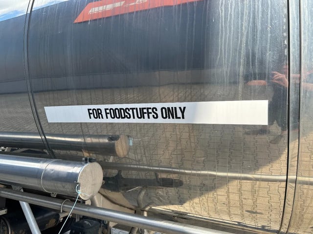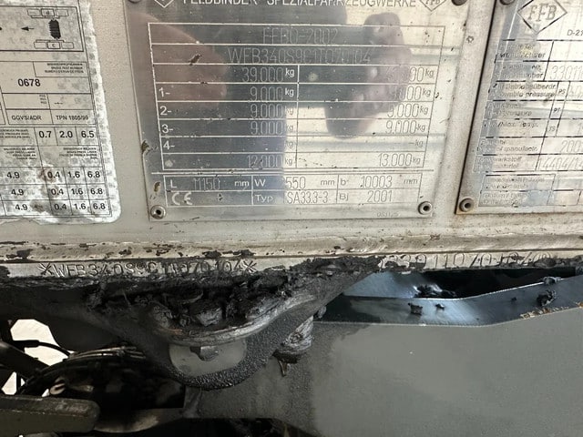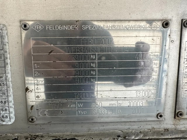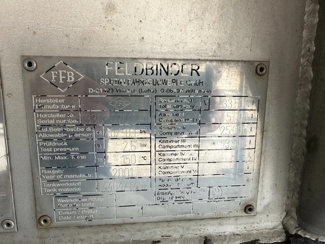 mooie 06/2001 FELDBINDER levensmiddelen tankoplegger met een inhoud van 33.500L, 3 compartiment (comp. 1: 5.000L / comp. 2: 25.000L + 1x slingerschot / comp. 3: 3.500L), incl pomp (merk: UNIBLOC), 3x SAF assen met schijfremmen (INTRADISC), leeggewicht: 7.800kg, max. massa: 39.000kg, 385/65-R22.5 banden (L: 9/6/7mm; R: 8/10/5mm), ALCOA-velgen, Nederlandse registratie met geldige technische keuring (APK) t/m: 25/09/2026