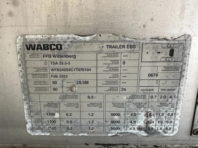 Achteras 1: Max. aslast: 9000 kg; Bandenprofiel links: 55%; Bandenprofiel rechts: 50%