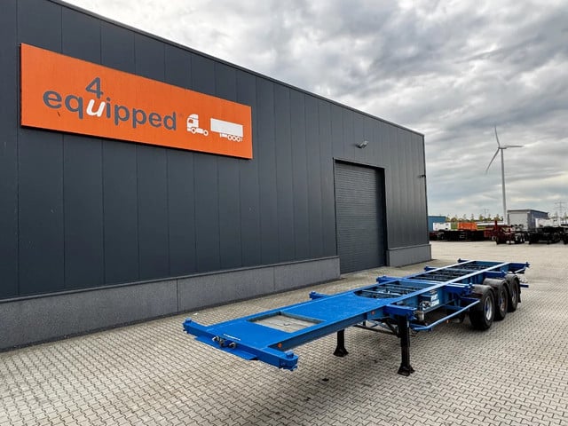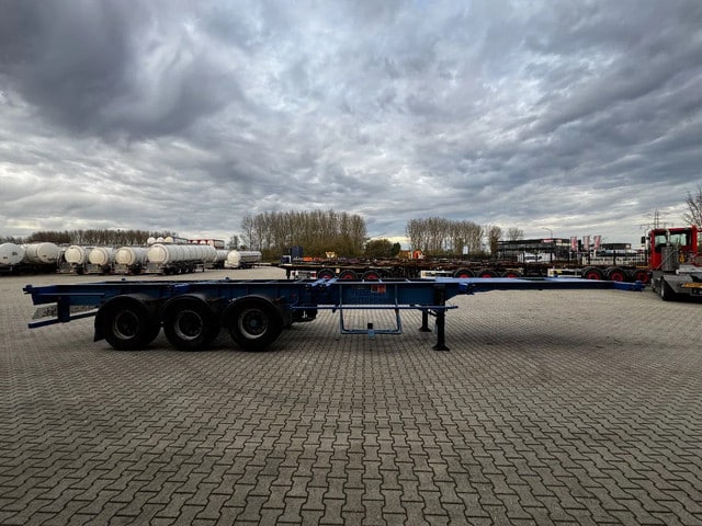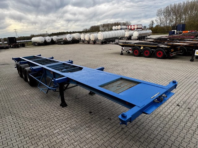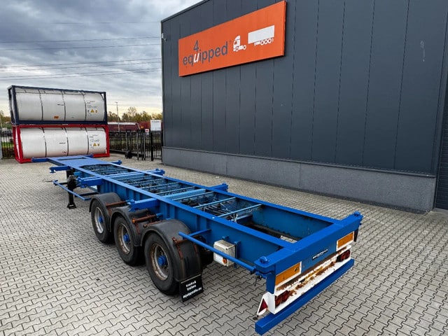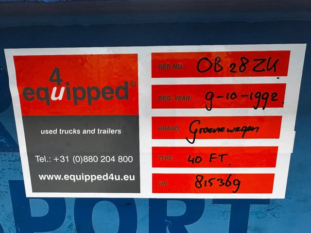 1992 GROENEWEGEN vlak 40FT chassis met ROR assen met trommelremmen, niet-uitschuifbaar, voor 1x 40FT / 2x 20FT / 1x 20FT centraal / 1x 30FT, 1e as is liftas, leeggewicht: 5.660kg, GVW: 36.000kg, 385/65-R22.5 banden (L: 7/9/9mm; R: 10/12/12mm), Nederlandse registratie