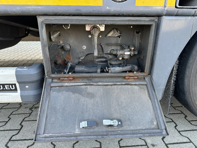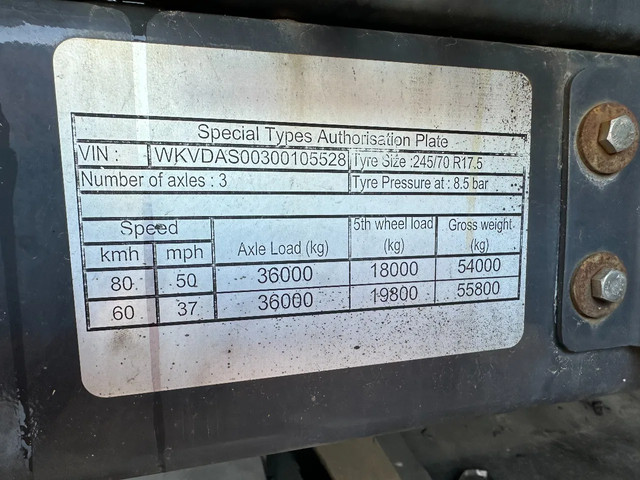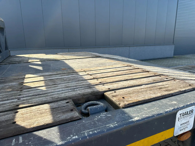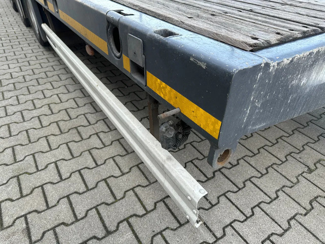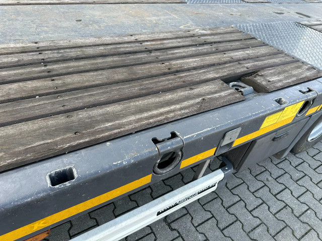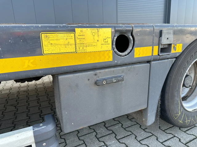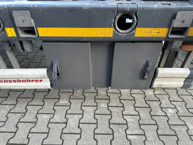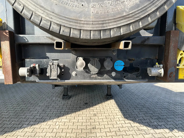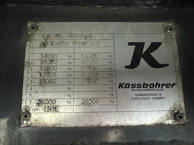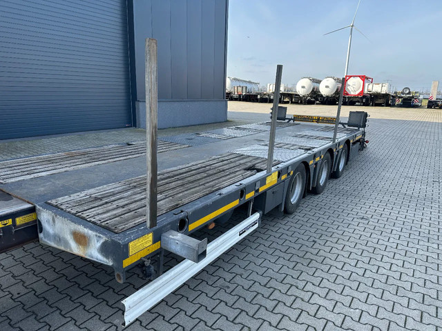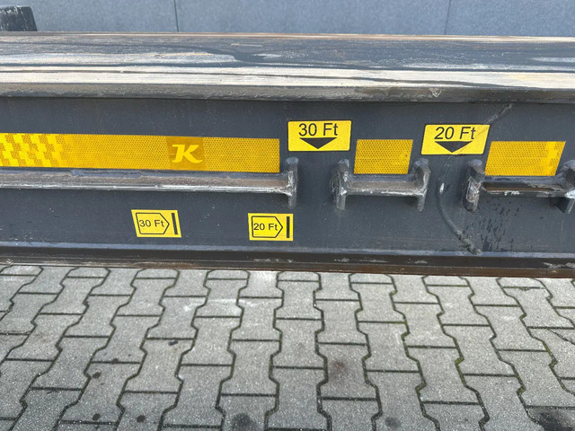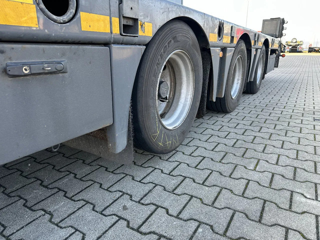 in zeer goede staat 2020 KASSBOHRER LOWBED LB3E uitschuifbare dieplader met ABS/EBS, 1x uitschuifbaar (600cm), 2 sets oprijplaten, BPW Eco-Plus -assen met trommelremmen, 3e as = stuuras (naloopas), hardhouten vloer (vloerhoogte: 86cm) met 9x verbreders (L+R: oplegger is verbreedbaar tot 3150mm), 9 zware sjorogen in de kantbalken (L+R), 6 zware sjorogen in de vloer (L+R), 10 rongpotten(L+R) + 12 rongen. 3x twistlocks (L+R) + containerrek, steunpoten achter, 4x breedtebord, 245/70-R15.5 banden (profiel links: 8/9, 11/10, 8/8mm; profiel r: 9/9, 10/11, 9/9mm), leeggewicht: 11.960kg, max massa: 48.000kg, Nederlandse registratie met geldige technische keuring (APK) t/m 13-02-2027