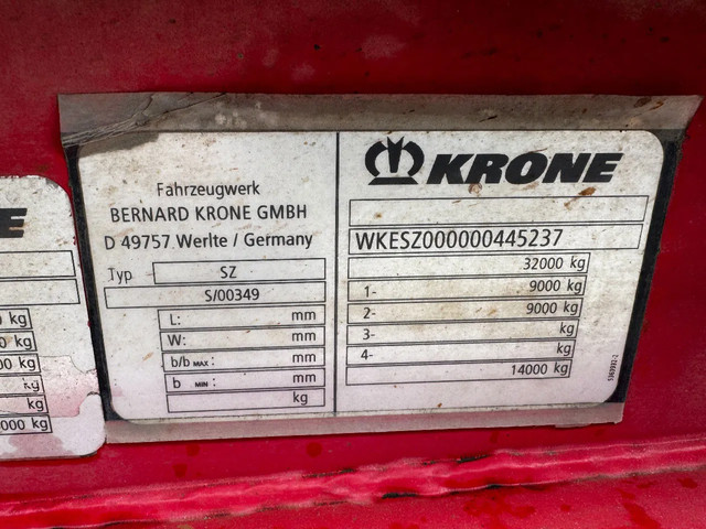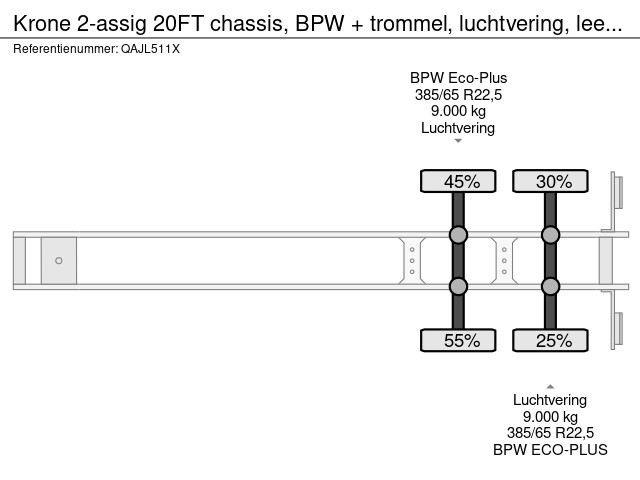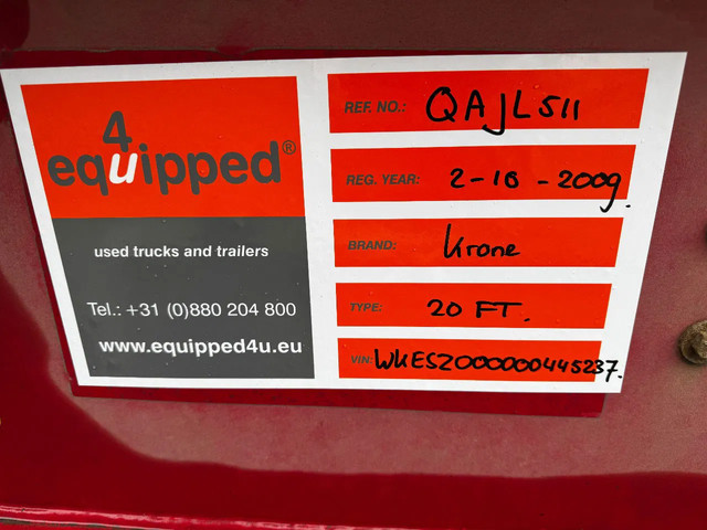 net 2009 KRONE 20FT-chassis met ABS/EBS, BPW Eco+ assen en trommelremmen, luchtvering, leeggewicht: 3.180kg, GVW: 32.000kg, 385/65-R22.5 banden (L: 9/4mm: R: 7/5mm), Belgische registratie