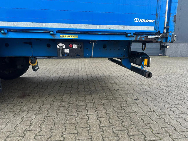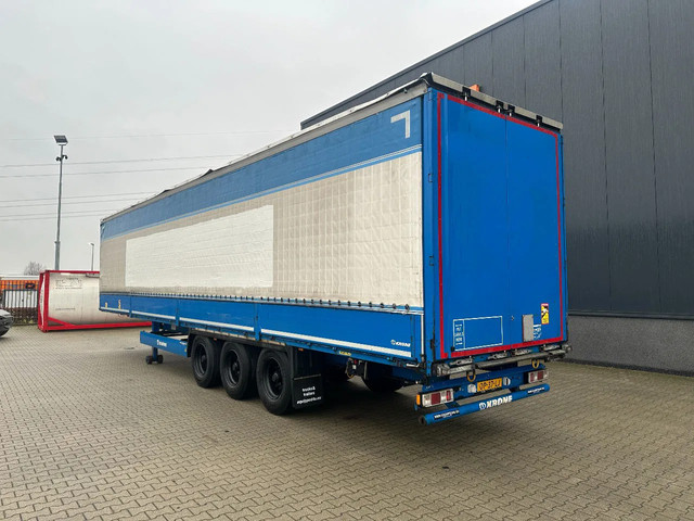 zeer mooie 10/2016 KRONE schuifzeil oplegger met ABS/EBS, zijborden (80CM HOOG), BPW-assen met trommelremmen, 1e as = liftas, multilock + sjorogen, schuifdak, achterdeuren, leeggewicht 6.900kg, max massa: 41.000kg, bandenmaat 385/65-R22.5 (profiel links: 9/11/6m; profiel rechts: 4/11/7mm), Nederlandse registratie