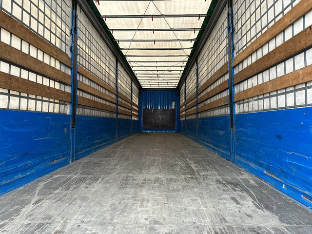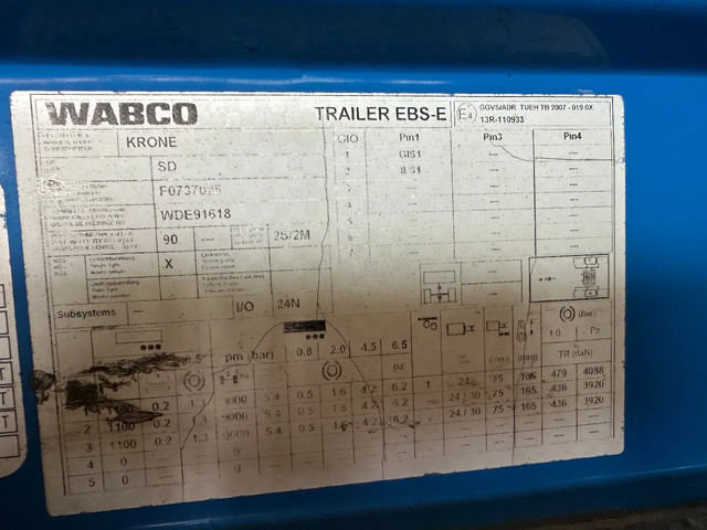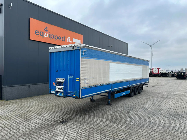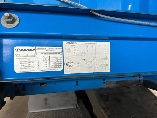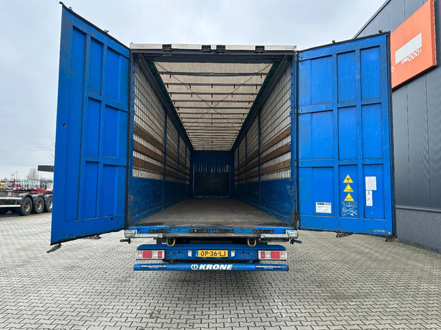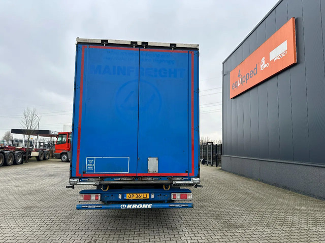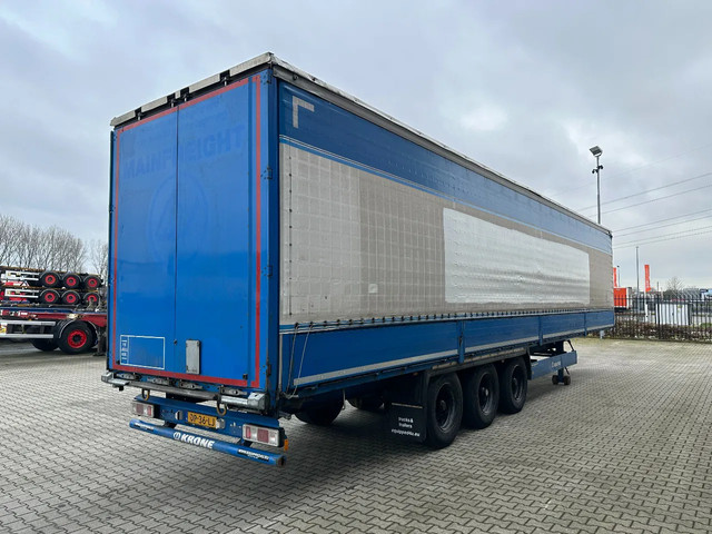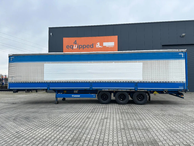 zeer mooie 10/2016 KRONE schuifzeil oplegger met ABS/EBS, zijborden (80CM HOOG), BPW-assen met trommelremmen, 1e as = liftas, multilock + sjorogen, schuifdak, achterdeuren, leeggewicht 6.900kg, max massa: 41.000kg, bandenmaat 385/65-R22.5 (profiel links: 4/9/6m; profiel rechts: 4/3/4mm), Nederlandse registratie met geldige technische keuring (APK) t/m 29-10-2026