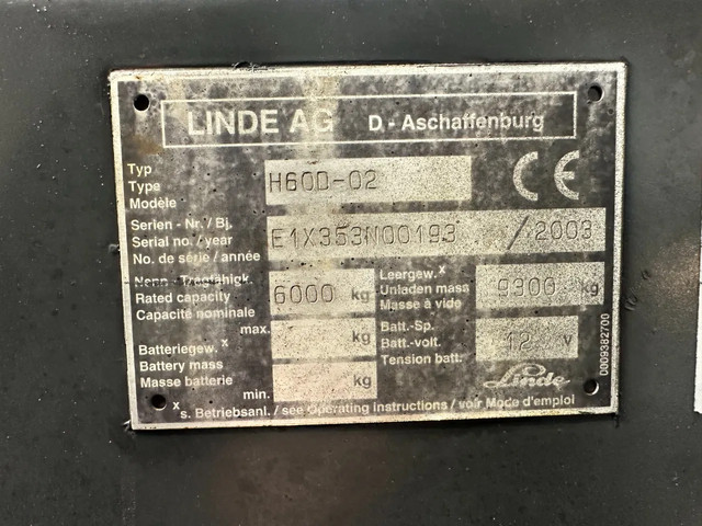 Linde H60D-02 / fork positioner / 6.000kg / duplex / 6 cil. Deutz diesel