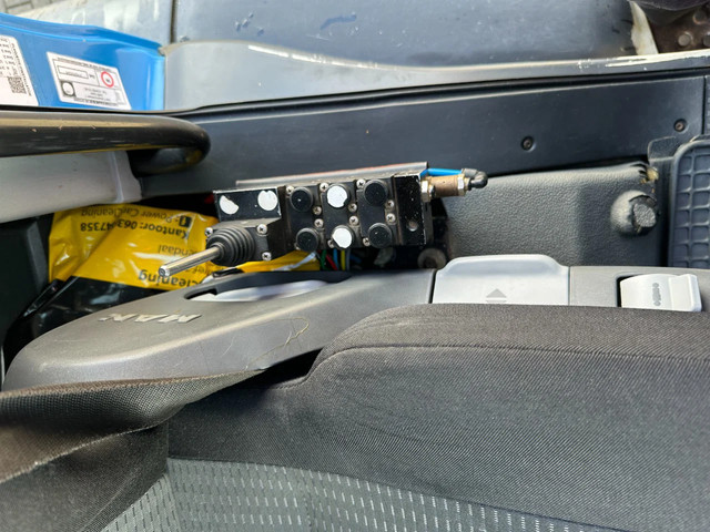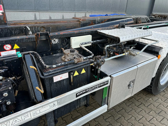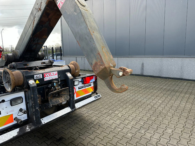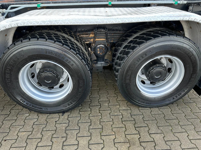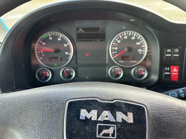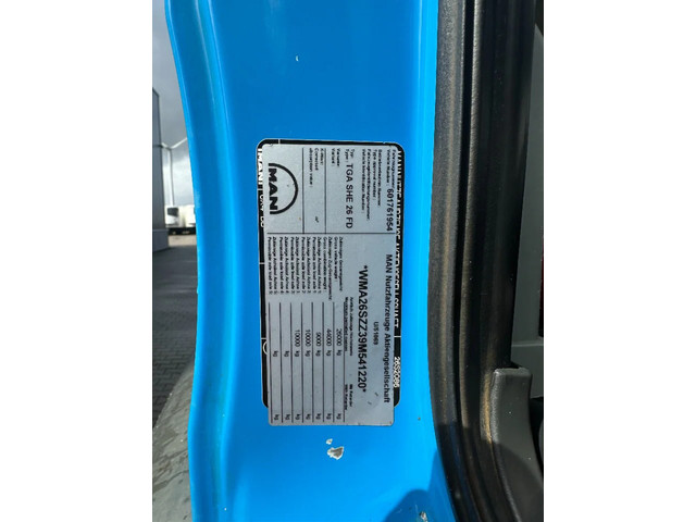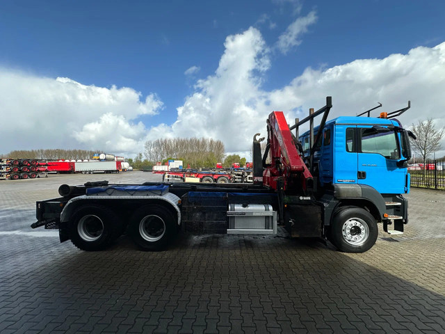 zeer nette en goed werkende 2009 MAN TGS 33.440 6×4, 403.098 km, HMF 1823 K3 kraan met rotator en afstandsbediening, VDL haakarm (20 ton), Rockinger vangmuil, rondom bladvering, handgeschakeld, PTO, radio/cd, 3 stoelen, airconditioning, cruise control, centrale deurvergrendeling, el. bedienb. ramen, diverse sperren, voorbanden: 385/65-R22.5;(profiel links: 12mm; profiel rechts: 9mm), achterbanden: 315/80-R22.5 (profiel links: 17/17mm, 11/6mm: profiel rechts: 18/18mm, 18/5mm), Belgische registratie