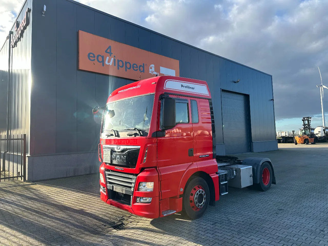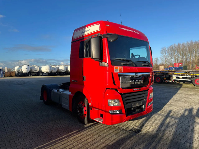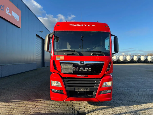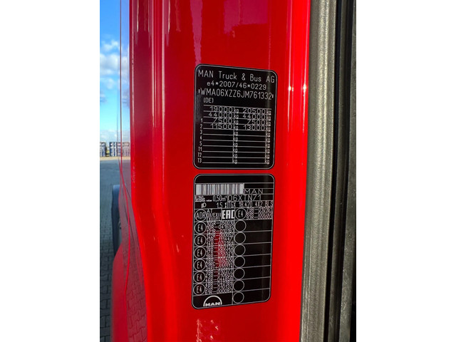 mooie 12/2017 MAN TGX 18.420 4×2 met slechts 436.367km, automaat, Euro-6, PTO, airconditioning, koelkast, 1 bed, ADR (EX/II. EX/III, FL, AT) geldig t/m 31-05-2026, 315/70-R22.5 banden (L: 9mm, 5/6 mm; H: 10mm, 12/6 mm), VIN: WMA06XZZ6JM761332, MAN BrakeMatic, Duitse registratie met geldige technische keuring (HU-Prüfung) t/m 10-05-2026