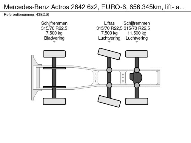 Mercedes-Benz Actros 2642 6×2, EURO-6, 656.345km, lift- and steering axle, NL
