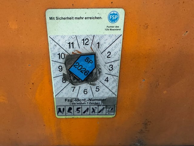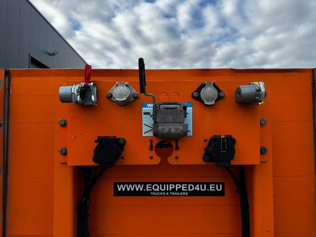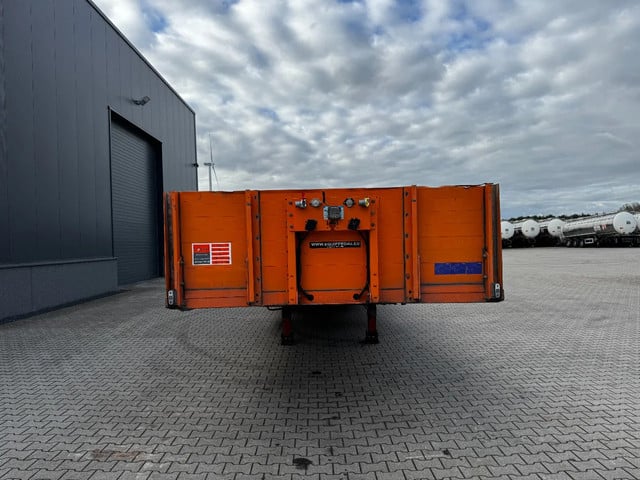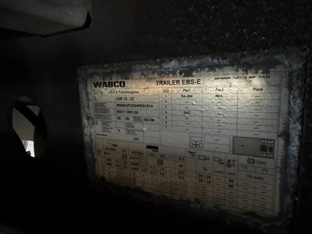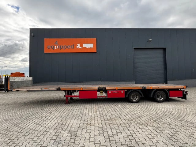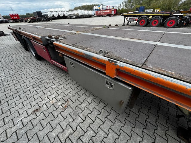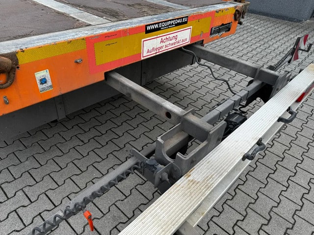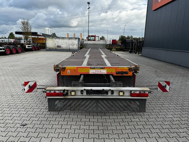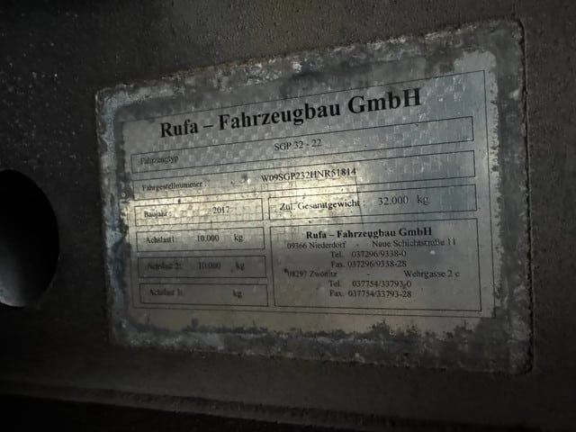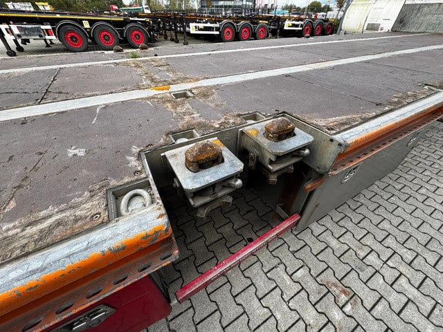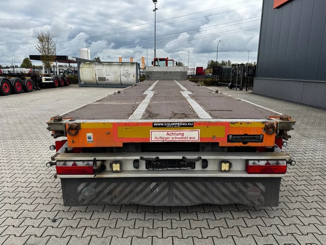 2017 Rufa platte gegalvaniseerde mega-oplegger, tweede as is stuuras (naloop),12 twist-locks voor 1x 20FT/30FT/40FT, 1 x 20FT centraal of 2x 20FT containers (HECKBÜNDIG), 8 rongpotten, 2 x 7 sterke sjorogen, BPW-assen met schijfremmen, uitschuifbare bumper (78cm), leeggewicht: 6.320kg, max. massa: 32.000kg, 4 breedteborden, dubbellucht met 245/70-R19.5 banden (L: 4/8, 8/6, 5/5mm; R: 9/9, 11/11), Duitse registratie met geldige SP t/m 01-2026