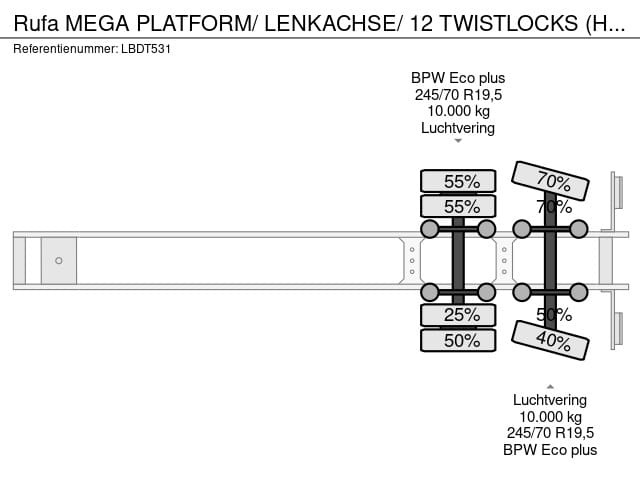 RUFA MEGA PLATFORM / LENKACHSE/ 12 TWISTLOCKS 1x 40FT + 2x 20FT (HECKBÜNDIG) / BPW / SCHEIBE/ GALVANISIERT/ RUNGENTASCHEN