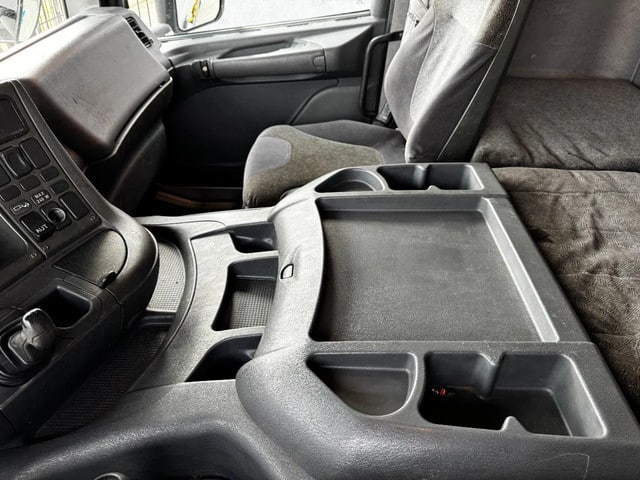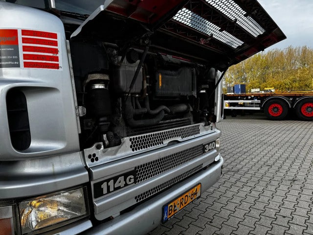 12/2001 Scania P114-340 4×2 met 948.550km en voorzien van HIAB 19-5 kraan (5x hydraulisch uitschuifbaar) met afstandsbediening, 4 hydraulische steunpoten, EURO-3, 3 pedalen, airconditioning, radio/cd, Nederlandse registratie met geldige technische keuring (APK) t/m 02/12/2025