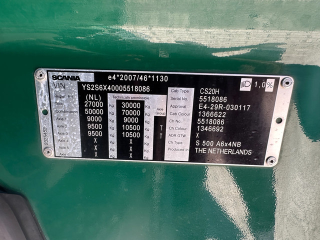 Scania S500 6×4 RETARDER / ontheffing 78 ton / NL-truck / APK: 09-2026