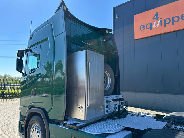 zeer mooie 09/2018 SCANIA S600 6×4 met 871.943km met ontheffing 78 ton en voorzien van RETARDER, spoilers, fenders en skirt, hydraulisch verstelbare schotel, 2x dieseltank (totaal voor ca. 1.000L), koelkast, 2x bed, automatische airco, SCANIA INFOTAINMENT PREMIUM met navigatie, 27mc, banden vooras: 385/65-R22.5 (profiel links: 4mm; profiel rechts: 8mm), banden achteras: 315/80-R22.5 (profiel links: 7/7, 10/9mm; profiel rechts: 9/10, 5/6mm), leeggewicht: 10.448kg, GVV: 30.000kg, Nederlandse registratie met geldige technische keuring (APK) t/m 01-09-2026