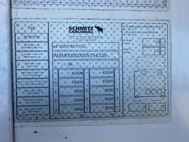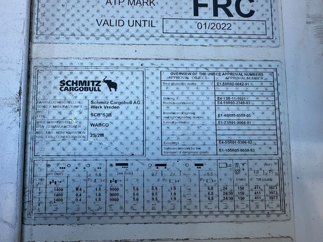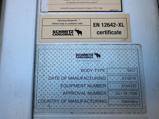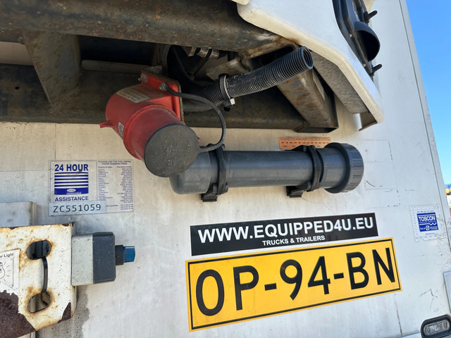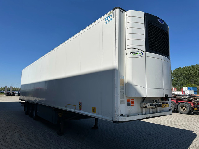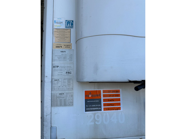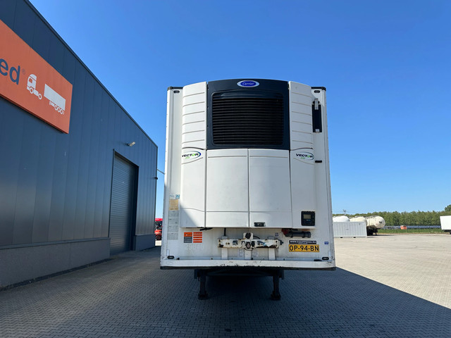 mooie 2016 Schmitz koeloplegger met ABS/EBS, BPW-assen met trommelremmen, CARRIER VECTOR 1550 D/E (dieseluren: 2.598u / elektrische uren: 2.681u), alu vloer, palletbox, inw.: 13.31×2.50×2.65m, 385/65-R22.5 banden (profiel links: 10/10/7mm; profiel rechts: 9/9/8mm), leeggewicht: 8.430kg, max. massa: 42.000kg, Nederlandse registratie met geldige technische keuring (APK) t/m 07-11-2026