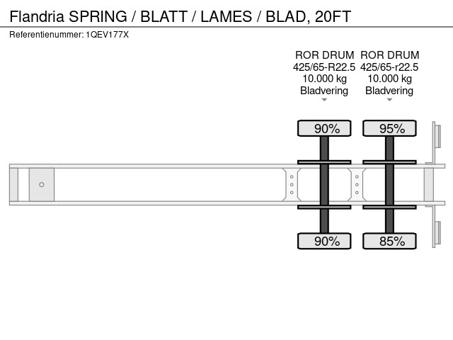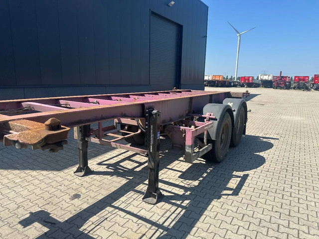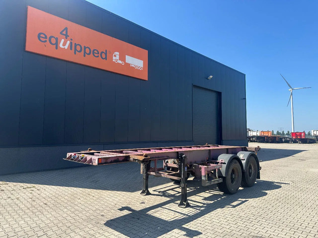 1995 FLANDRIA 20FT-chassis met ABS, bladvering (3 bladen), ROR-assen met trommelremmen (2x 10.000kg), 20FT, 425/65-R22.5 banden (L: 14/13mm: R: 14/15mm), leeggewicht: 3.110kg, GVW: 30.000kg, Belgische registratie met geldige technische keuring t/m: 13-06-2026