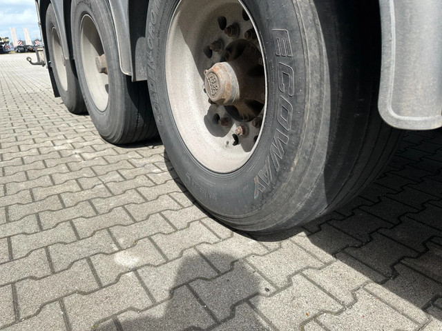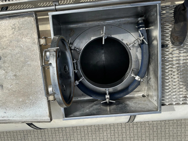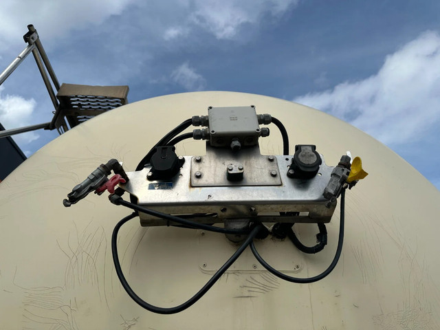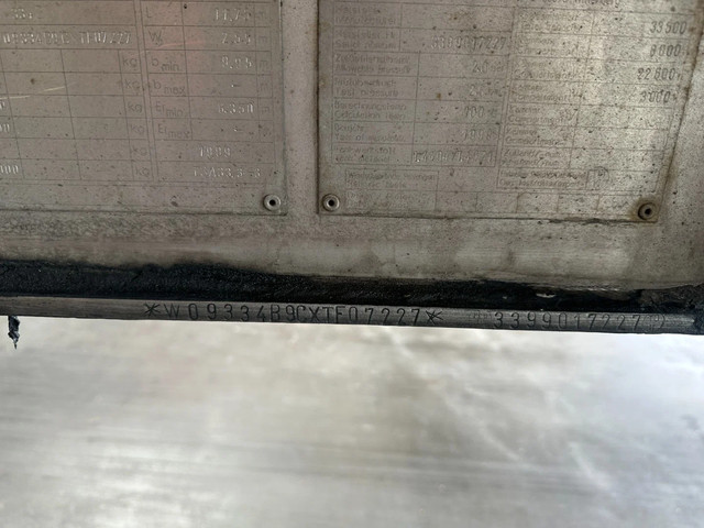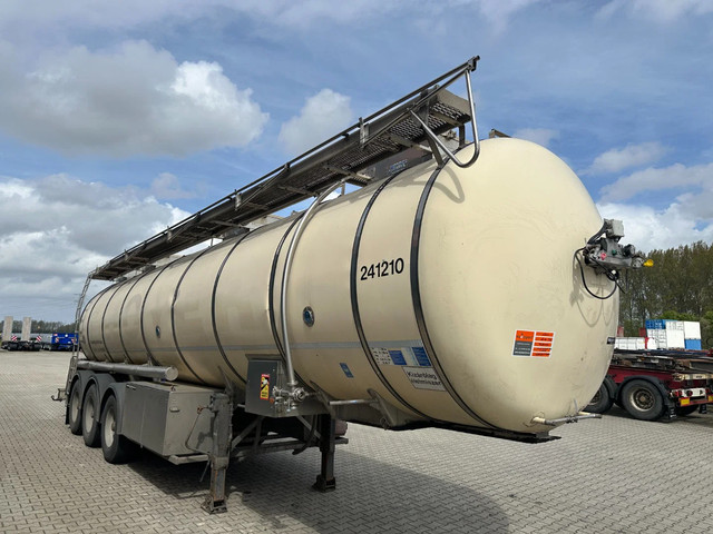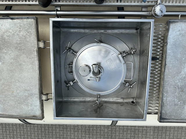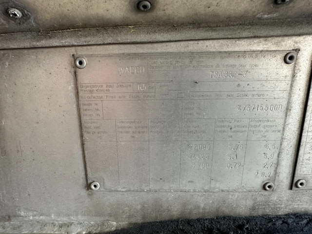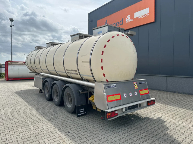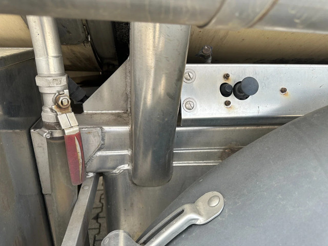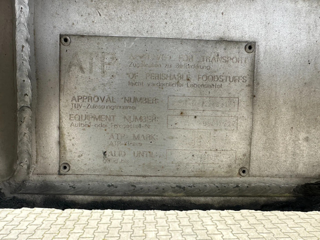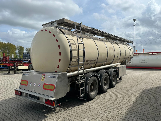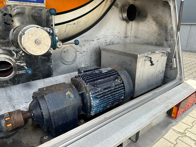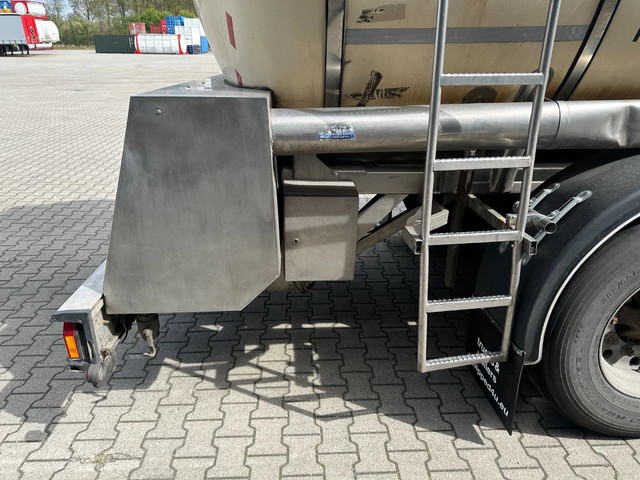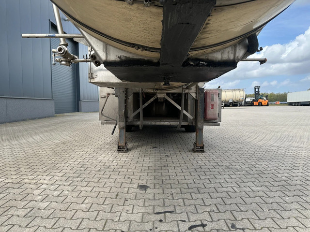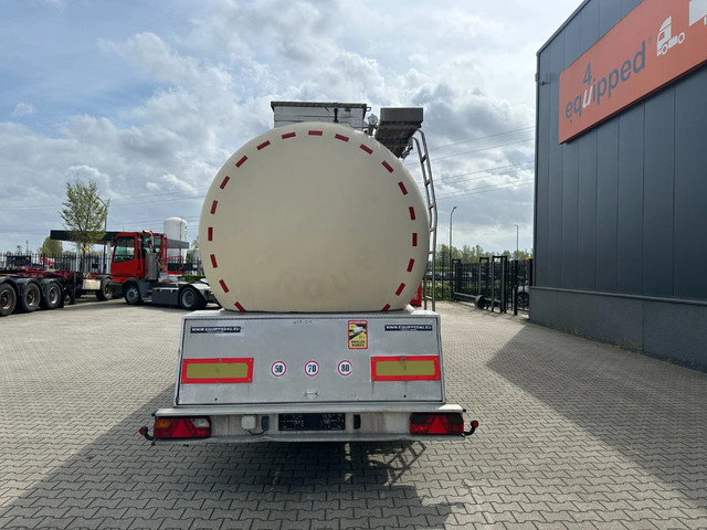 1999 FELDBINDER — напівпричіп-цистерна для харчових продуктів місткістю 33 500 л, 3 відсіки (відсік 1: 8 000 л / відсік 2: 22 500 л + 1 перегородка / відсік 3: 3 000 л), у комплекті з насосом (марка: IBEX PUMPE), ABS/EBS, 3 осі BPW з барабанними гальмами, 1-а вісь = підйомна вісь, диски ALCOA, власна вага: 7 320 кг, макс. вага: 34 000 кг, шини 385/65-R22.5 (Л: 6/6/4 мм; П: 6/6/6 мм)