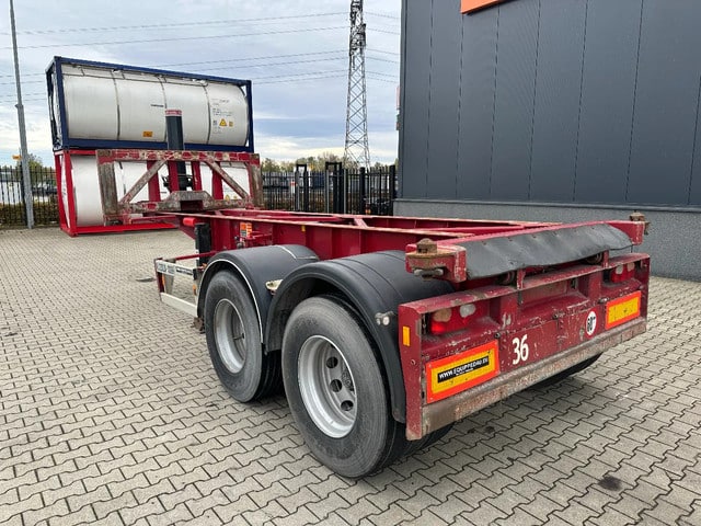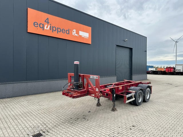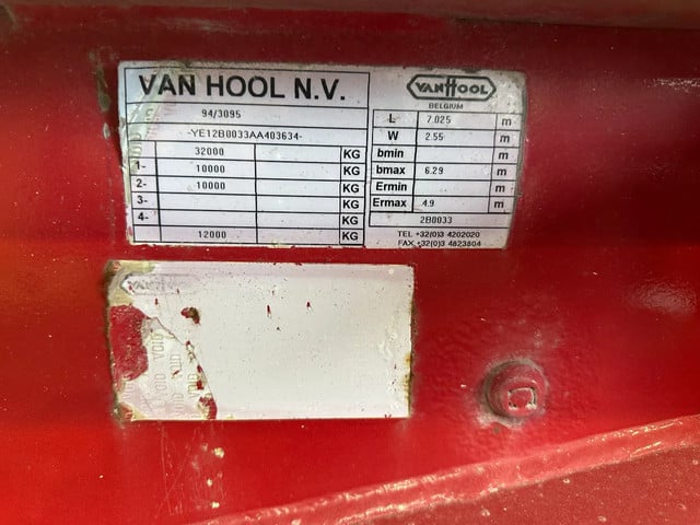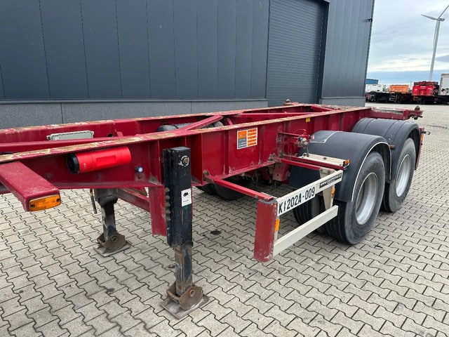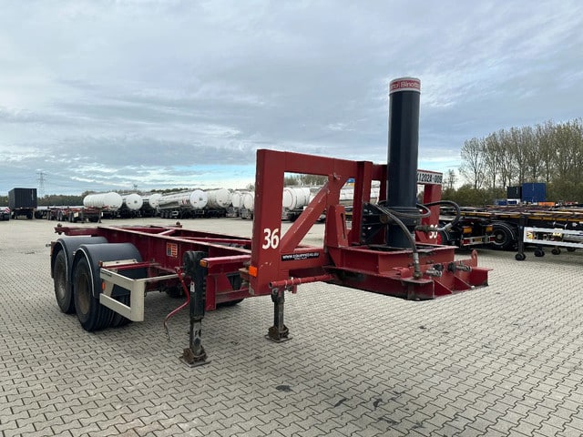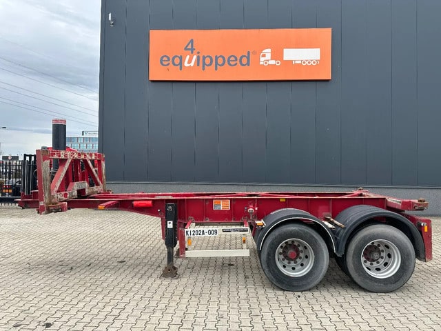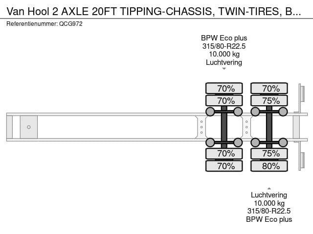 2004 VAN HOOL 2-assige 20FT kiepchassis met BINOTTO hefcilinder, ABS, BPW Eco+ assen met trommelremmen, dubbellucht met 315/80-R22.5 banden (L: 11/11mm, 11/11mm; R: 12/13mm, 12/11mm), leeggewicht 4.540kg, max. massa: 32.000kg, Belgische registratie met geldige technische keuring t/m 18-12-2025