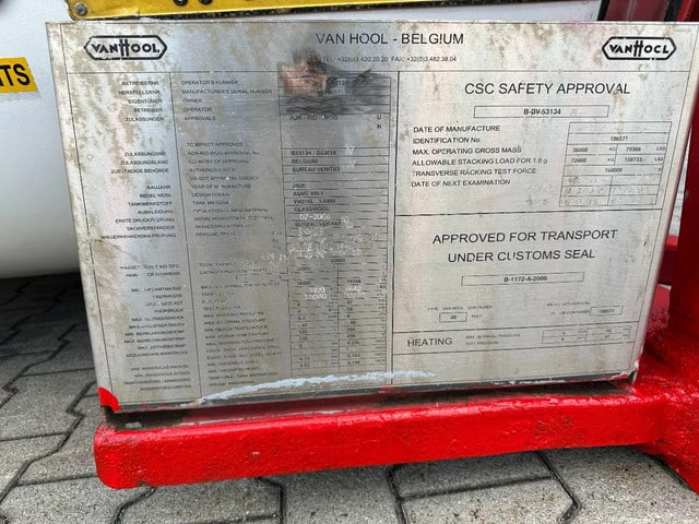 Van Hool 20FT SWAPBODY 30.800L, UN PORTABLE, T11, 2.5Y- + CSC inspection: 02/2028