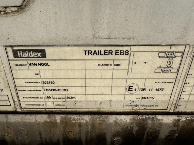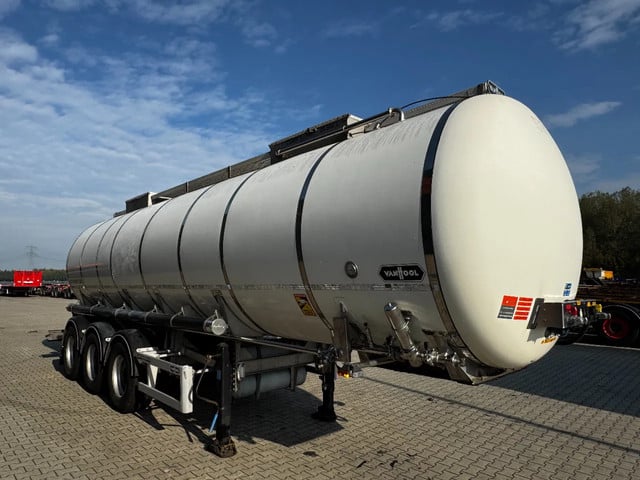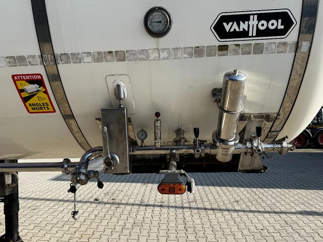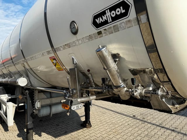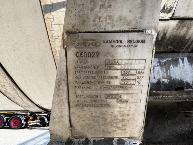 zeer mooie 2014 Van Hool levensmiddelen tankoplegger met een inhoud van 29.500L, 1 compartiment, 1x slingerschot, 3 x BPW assen met schijfremmen, leeggewicht: 5.860kg, max. massa: 39.000kg, 385/65-R22.5 banden (L: 13/14/13mm; R: 13/11/13mm), ALCOA-velgen, Nederlandse registratie met geldige technische keuring (APK) t/m: 3/12/2025