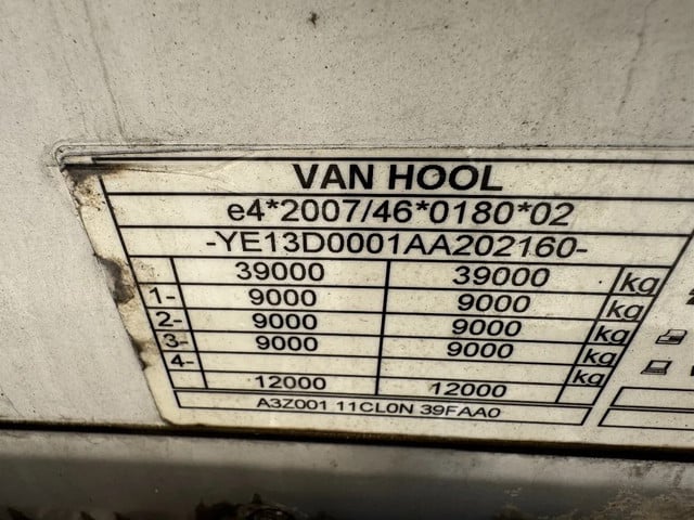 Achteras 3: Max. aslast: 9000 kg; Bandenprofiel links: 80%; Bandenprofiel rechts: 90%