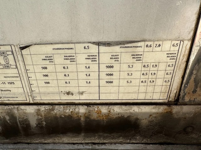 Achteras 1: Max. aslast: 9000 kg; Bandenprofiel links: 80%; Bandenprofiel rechts: 80%