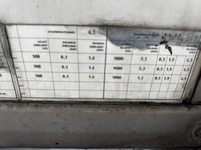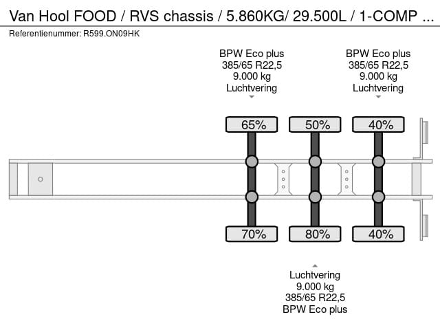 Achteras 1: Max. aslast: 9000 kg; Bandenprofiel links: 70%; Bandenprofiel rechts: 65%