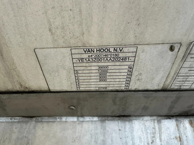 zeer mooie 07/2015 Van Hool levensmiddelen tankoplegger met een inhoud van 39.000L met 3 1 compartiment (comp.1: 7.000L / comp. 2: 25.000L / comp. 3: 7.000L), ABS/EBS, 3 x BPW Eco-Plus assen met schijfremmen, ALCOA-velgen, ADR-attest (FL, AT), leeggewicht: 7.460kg, max. massa: 39.000kg, 385/65-R22.5 banden (L: 7/15/10mm; R: 9/8/10mm), Nederlandse registratie met geldige technische keuring (APK) t/m: 20/04/2026