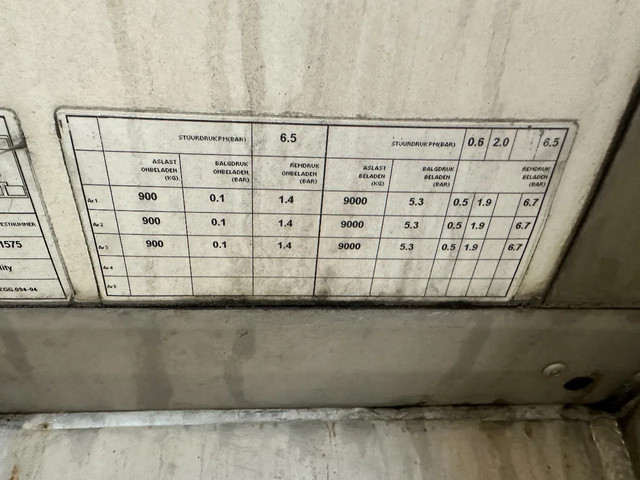 Achteras 3: Max. aslast: 9000 kg; Bandenprofiel links: 60%; Bandenprofiel rechts: 60%