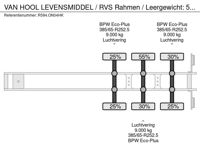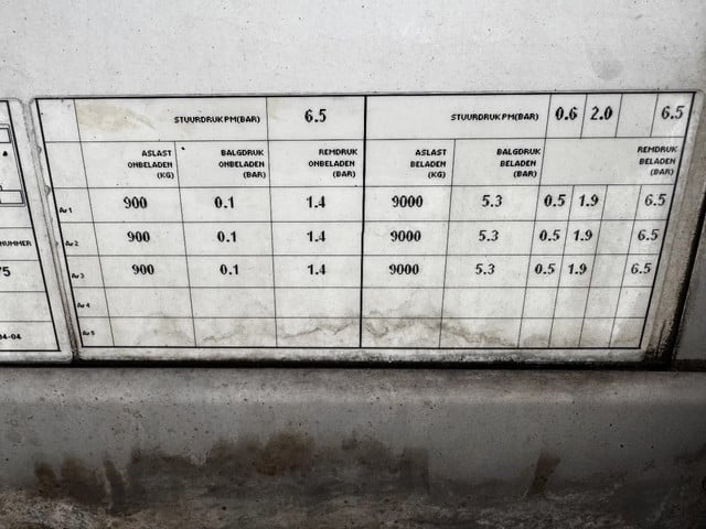 Achteras 3: Max. aslast: 9000 kg; Bandenprofiel links: 25%; Bandenprofiel rechts: 30%