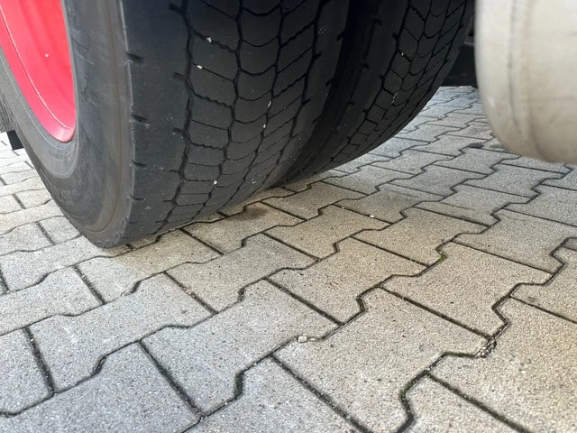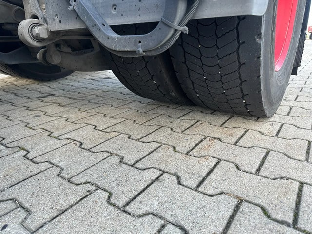 Achteras: Dubbellucht; Max. aslast: 11500 kg; Bandenprofiel linksbinnen: 50%; Bandenprofiel linksbuiten: 50%; Bandenprofiel rechtsbinnen: 45%; Bandenprofiel rechtsbuiten: 40%
