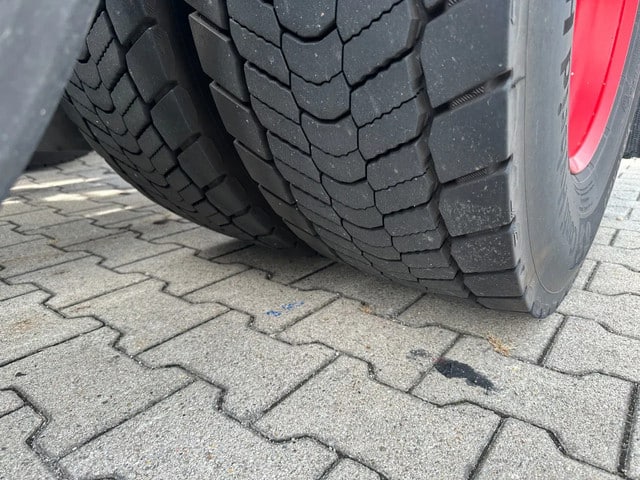 Achteras 2: Bandenmaat: 315/70 R22,5; Dubbellucht; Max. aslast: 11500 kg; Bandenprofiel linksbinnen: 75%; Bandenprofiel linksbuiten: 75%; Bandenprofiel rechtsbinnen: 75%; Bandenprofiel rechtsbuiten: 75%
