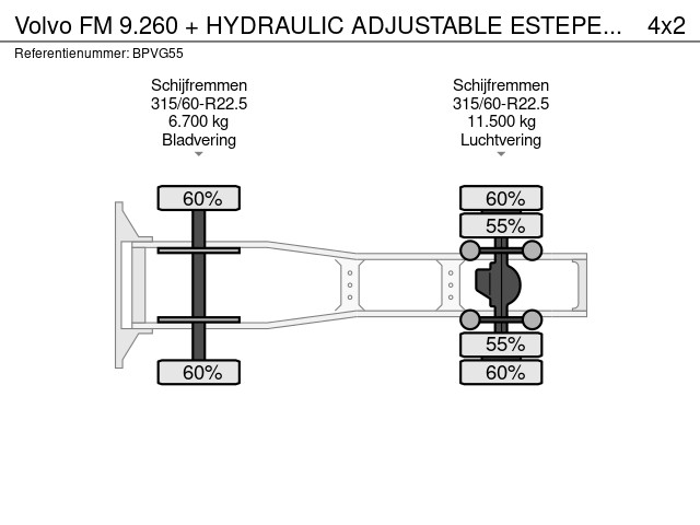 Volvo FM 9.260 + HYDRAULIC ADJUSTABLE ESTEPE 5TH WHEEL / 319.386km / NL / APK: 05/2026