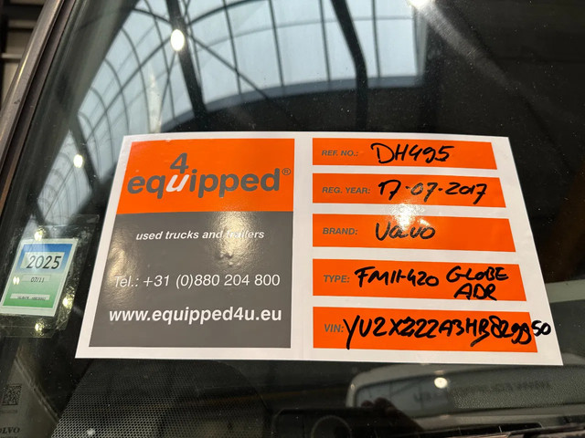 nette 07/2017 VOLVO FM11-420 Globetrotter 4×2 met slechts 725.528km, I-shift, Euro-6 met Ad-Blue, airconditioning, PTO, koelkast, standverwarming, nacht-airco, 1 bed, ADR (FL, OX, AT) geldig t/m 07-11-2026, ALCOA-velgen, 315/70-R22.5 banden (profiel links: 12mm, 6/5mm: profiel rechts: 12mm, 5/5mm), VEB (Volvo Engine Brake), chassisnummer: YV2XZ22A3HB829950, Belgische registratie met geldige technische keuring t/m 07-11-2026